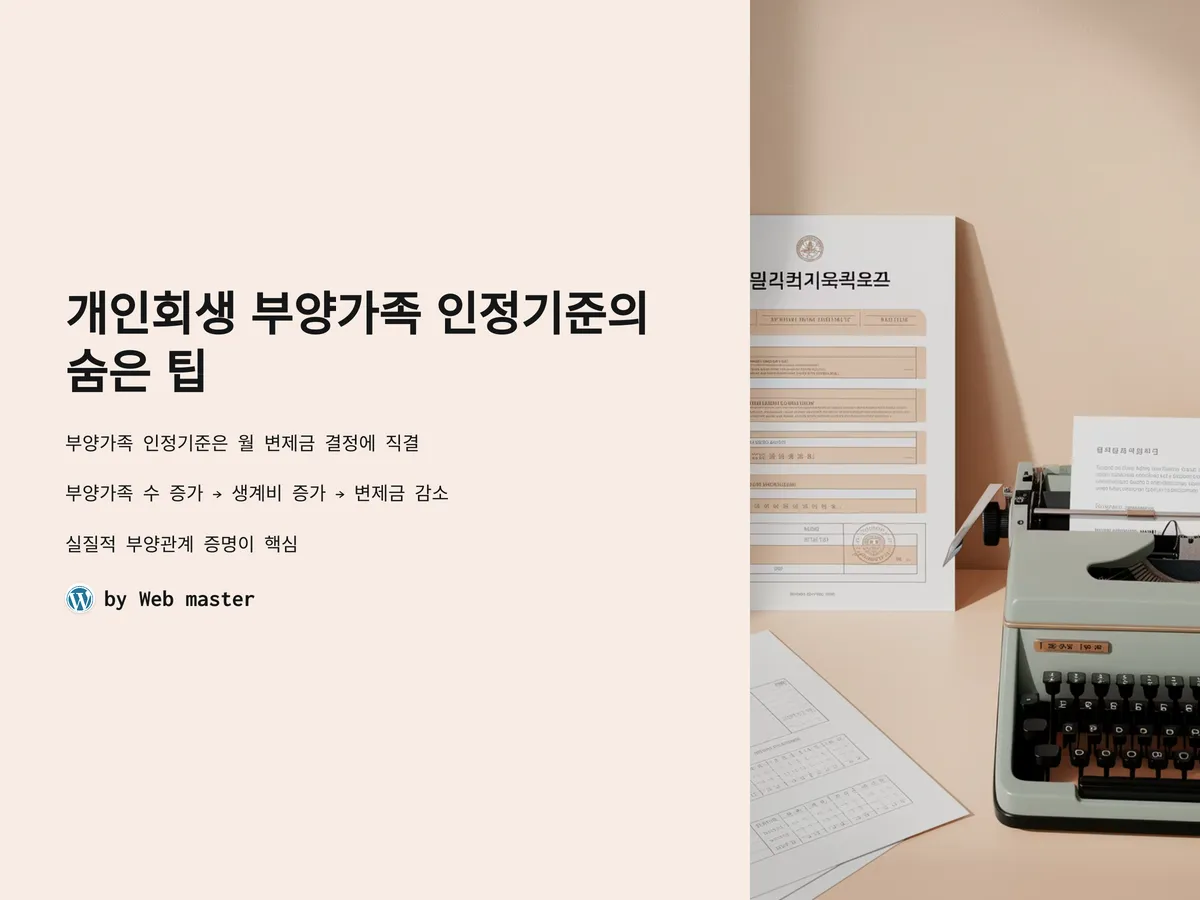 개인회생을 준비하면서 많은 분들이 간과하는 부분이 바로 ‘부양가족 인정기준’입니다. 법원은 단순히 가족관계등록부 상의 가족이 있다고 하여 모두 부양가족으로 인정해주지 않습니다. 실제로 생계를 같이 하고 있는지, 실질적으로 부양하고 있는지 등의 조건을 꼼꼼하게 따집니다. 이러한 부양가족 인정 여부는 월 변제금 결정에 직결되며, 부양가족 수가 늘어나면 생계비가 증가하고, 그만큼 변제금은 낮아지는 구조이기 때문에 아주 중요한 요소입니다.