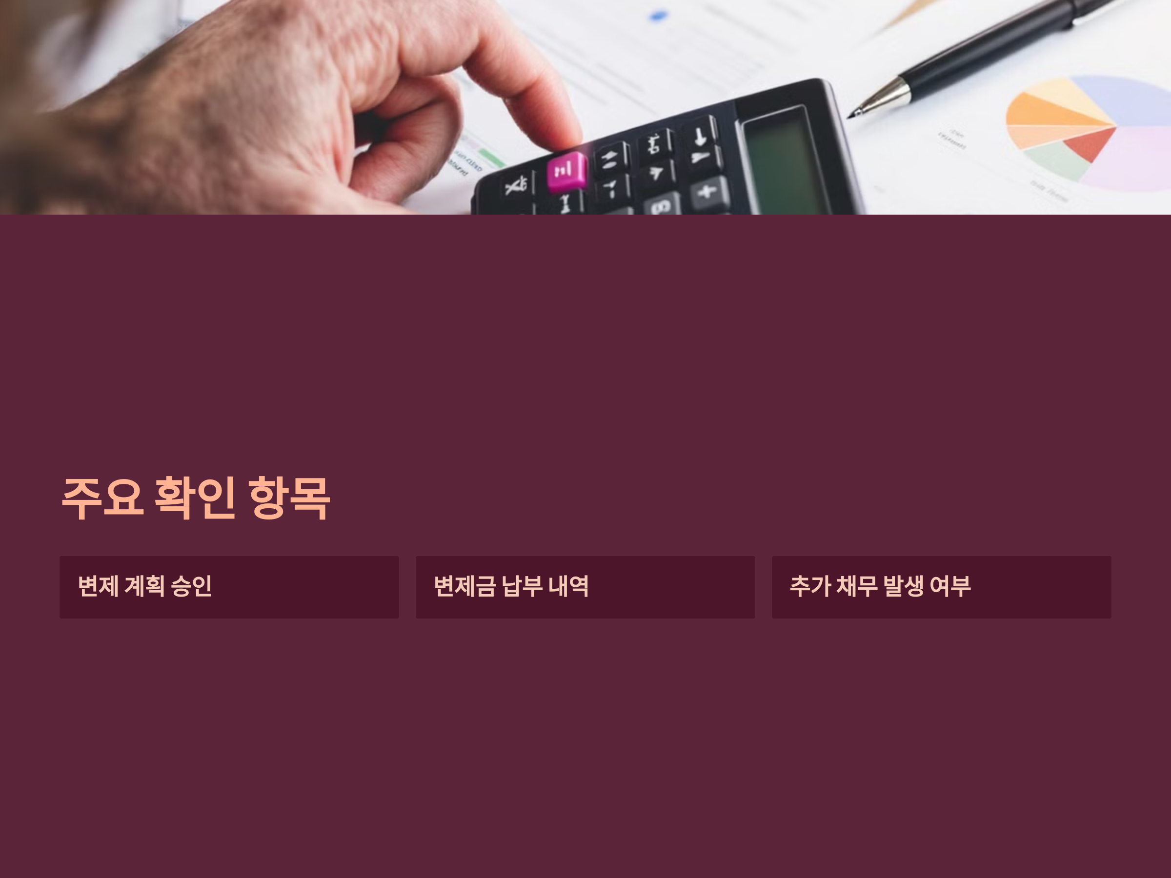 - 변제금 납부 내역: 매달 납부한 변제금이 제대로 반영되었는지 확인.