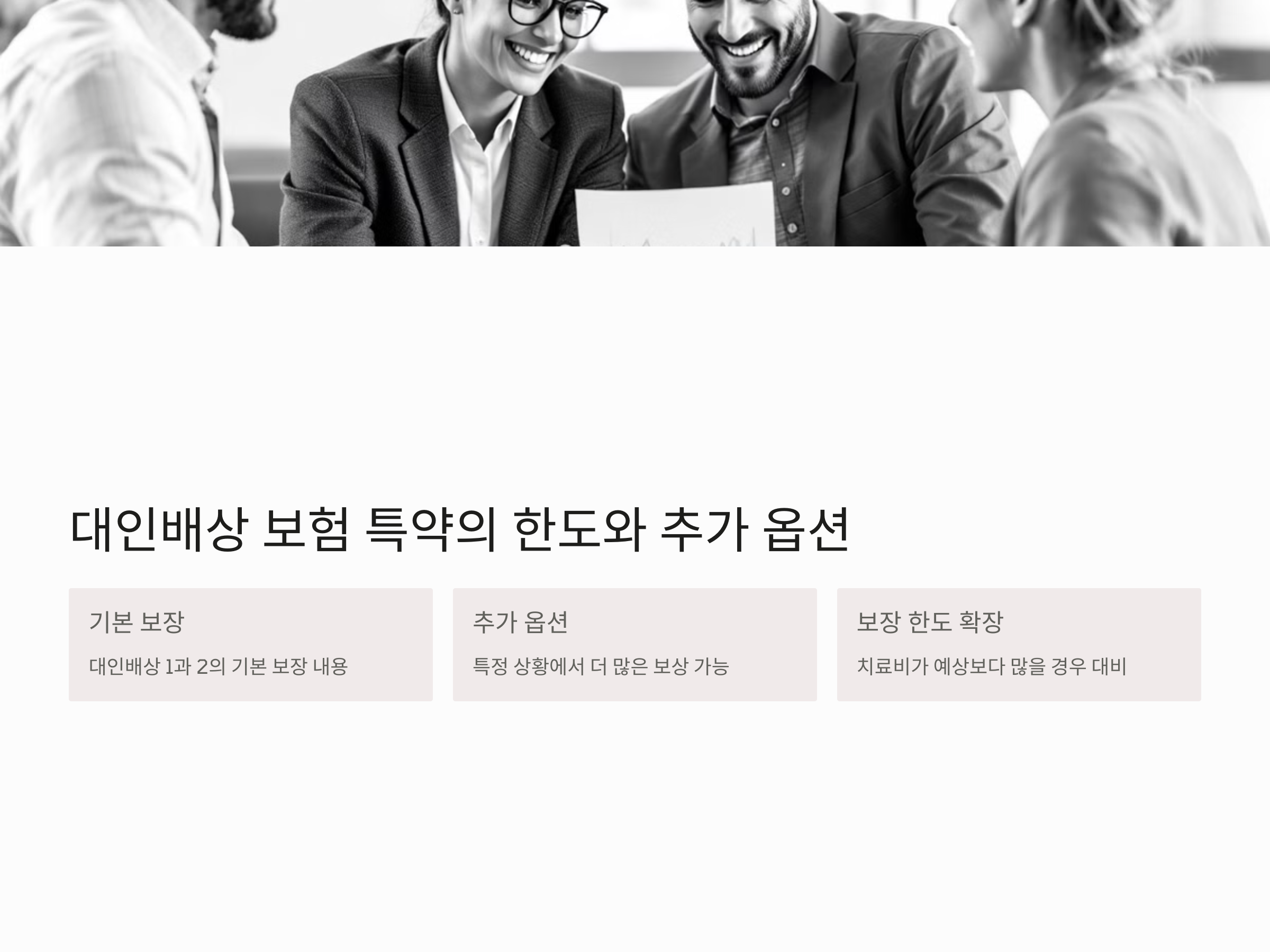 대인배상 보험 특약은 기본적인 보장 외에도 추가 옵션을 통해 더 넓은 보장을 받을 수 있습니다. 예를 들어, 대인배상 1과 대인배상 2 외에도, 추가 보장 옵션을 통해 특정 상황에서 더 많은 보상을 받을 수 있습니다. 일부 보험사에서는 사고 후 피해자의 치료비가 예상보다 많을 경우를 대비해 보장 한도를 확장하는 옵션을 제공하기도 합니다.