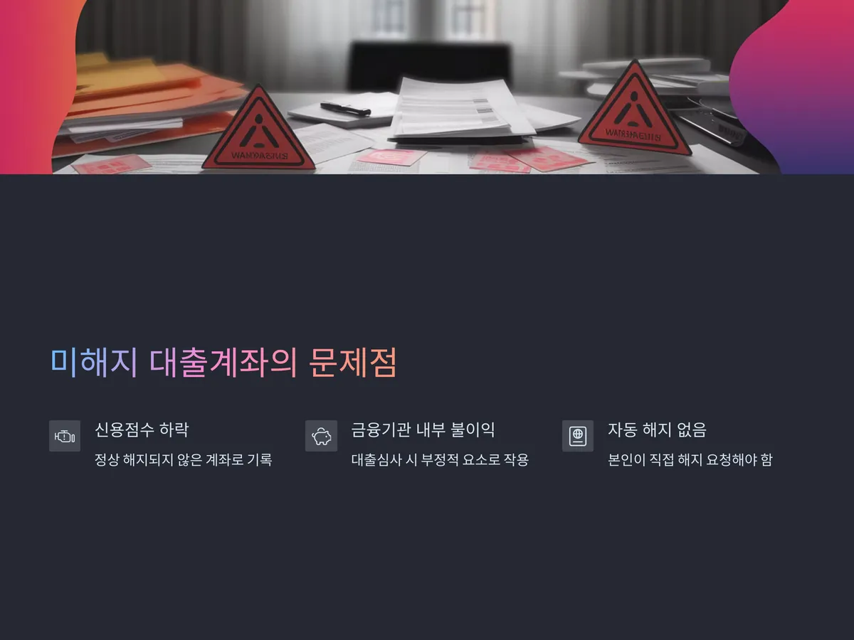일부 금융기관은 자동으로 해지되는 시스템을 갖추고 있지 않아, 장기간 계좌가 열려 있는 사례가 흔합니다. 심지어 대출 원리금이 완납되었더라도 ‘해지 신청’이 없는 경우 계좌는 살아 있는 상태로 남으며, 이는 대출상환능력을 왜곡된 형태로 보여줄 수 있습니다.