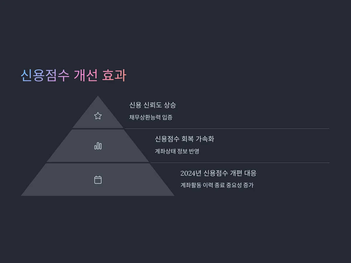 특히 2024년부터 시행된 신용점수 계산 개편안에서는 '계좌활동 이력 종료 여부'가 새로운 가중치로 반영되어, 과거보다 대출계좌 해지가 더 큰 의미를 갖게 되었습니다. 단순한 수치 이상의 의미를 갖는 대출계좌 해지, 지금이라도 바로 챙기세요.