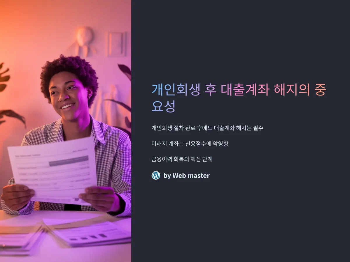 이 글에서는 개인회생 이후 대출계좌 해지의 중요성과 절차, 주의사항을 낱낱이 분석하고, 해지를 통해 신용을 더 좋게 만드는 방법까지 안내합니다. 대출 계좌 하나로 미래의 금융활동이 달라질 수 있기에, 지금 이 정보를 확인하는 것만으로도 훨씬 나은 재도약의 기회가 될 수 있습니다.