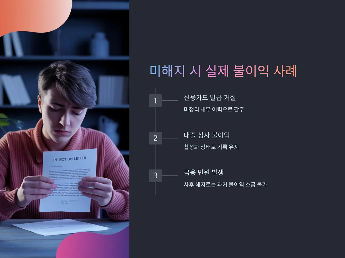 A씨는 개인회생을 3년간 성실히 마치고 채무를 모두 변제했지만, 2년 후 신규 신용카드를 신청하다 거절당했습니다. 이유는 ‘과거 대출계좌 미해지’로 인한 불이익이었고, 해당 금융기관은 이를 ‘미정리 채무 이력’으로 간주했습니다. 해지 요청만 했어도 없었을 일이었죠.