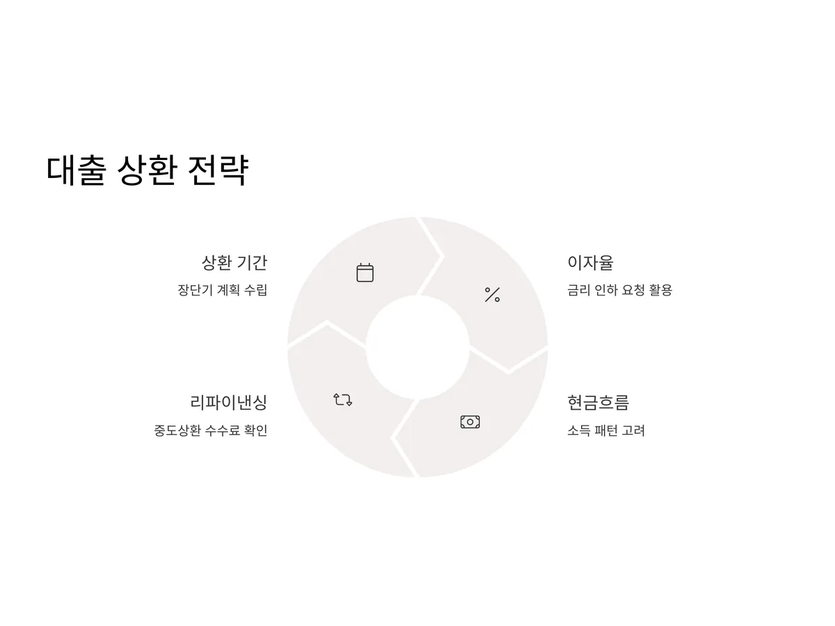 또한 최근 들어 ‘중도상환 수수료’ 없는 상품들이 늘고 있어, 금리가 낮은 쪽으로 갈아타는 리파이낸싱 전략도 주목받고 있습니다. 상환 시기는 물론, 금리 인하 요청 제도를 적극 활용해도 수십만 원을 절약할 수 있는 팁입니다.