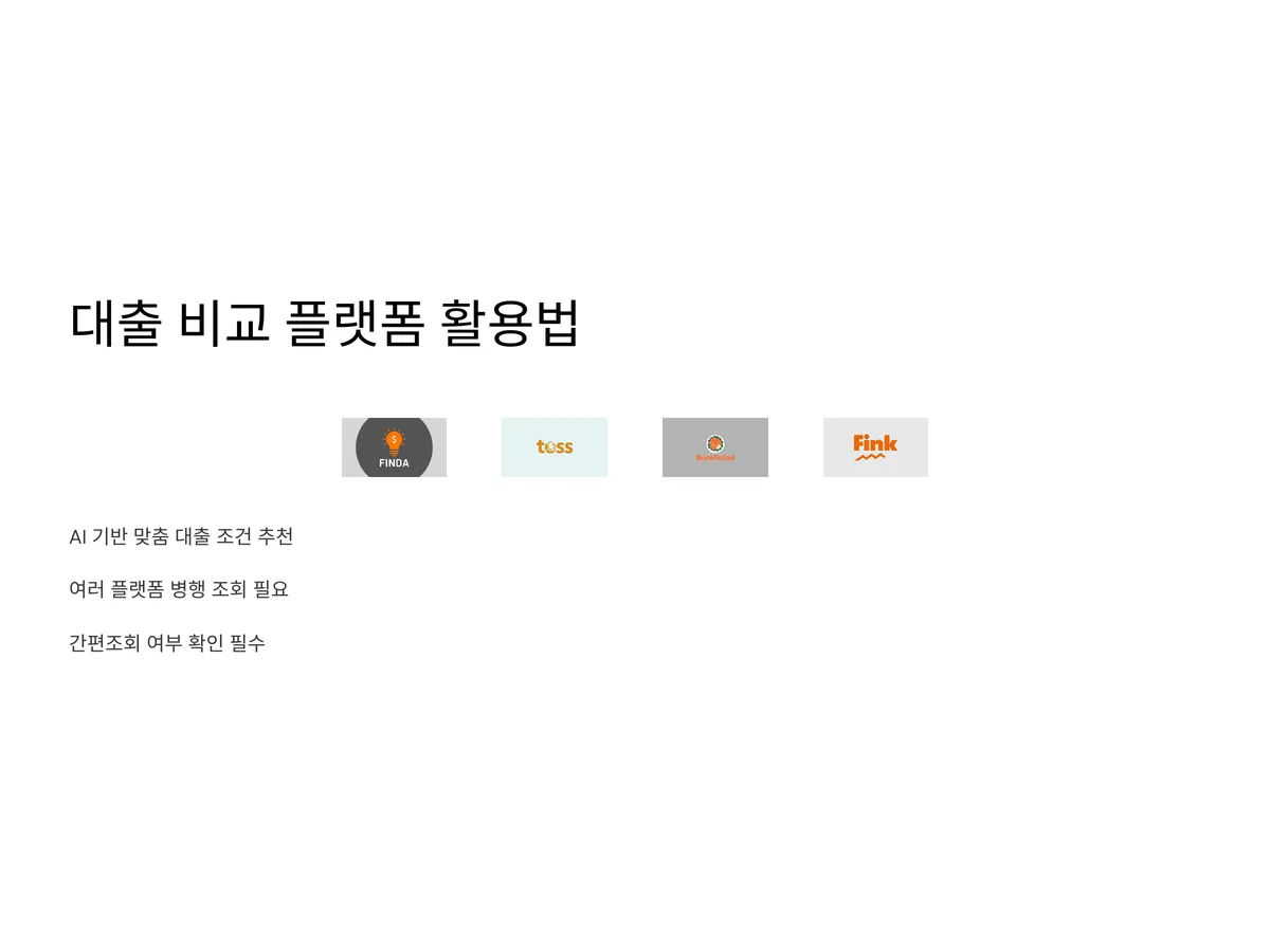 대출 비교 플랫폼의 등장으로 소비자들이 다양한 금융기관의 조건을 쉽게 비교할 수 있게 되었습니다. 대표적인 플랫폼으로는 핀다, 토스, 뱅크샐러드, 핀크 등이 있으며, 대출 한도, 예상 금리, 상환 조건 등을 한눈에 비교할 수 있습니다. 특히 AI 기반으로 맞춤 대출 조건을 추천하는 기능이 활성화되며, 금융 비전문가도 쉽게 접근할 수 있게 되었습니다.