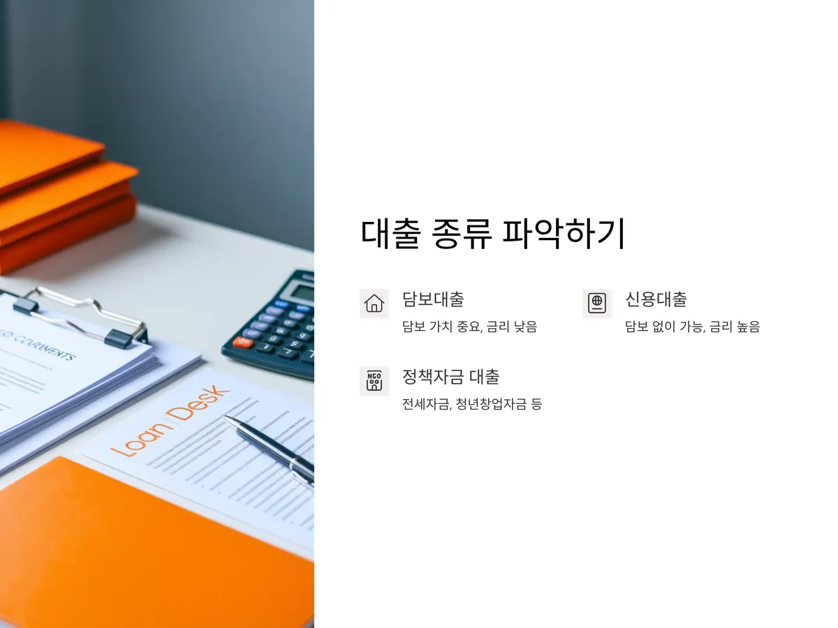 이 외에도 정부에서 지원하는 전세자금 대출, 청년창업자금, 긴급생활안정자금 등 다양한 정책자금이 존재하며, 대출 성격에 따라 준비 서류와 신청 방법이 다릅니다. 자신이 어떤 대출이 필요한지부터 명확히 아는 것이 첫 번째 단계입니다.