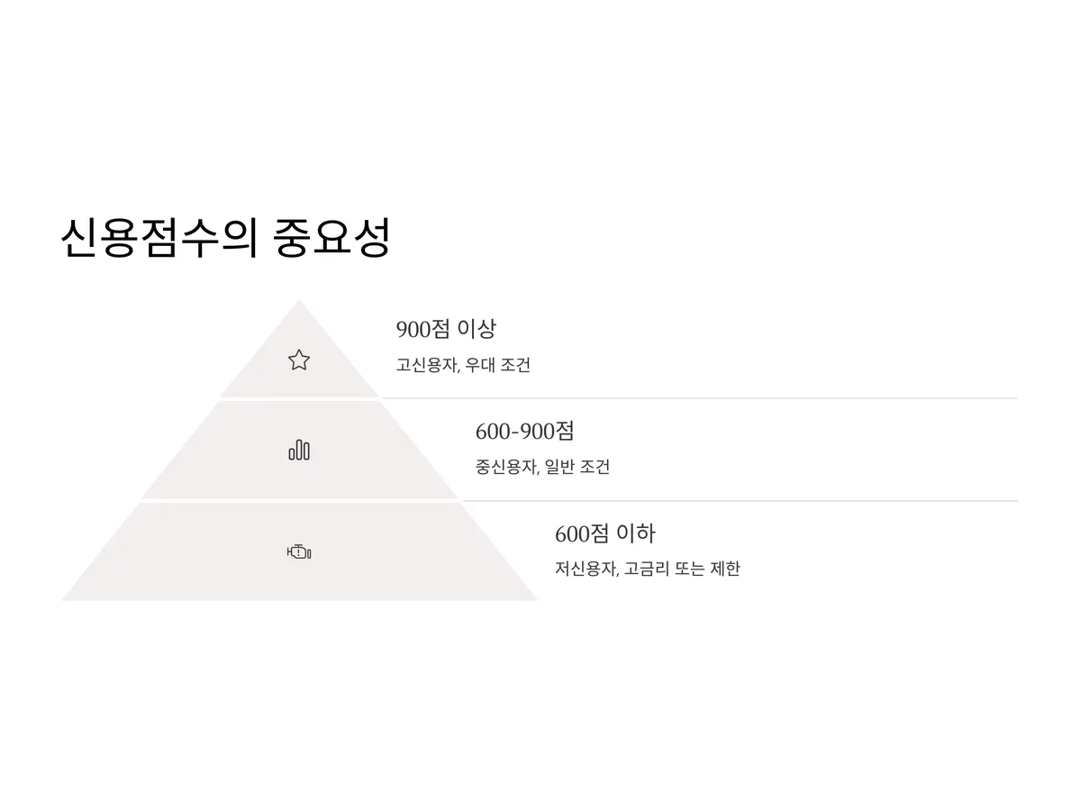대출 조건을 결정짓는 가장 큰 요소는 신용점수입니다. 신용점수는 개인의 금융거래 이력, 연체 여부, 사용금액, 카드사용 패턴 등 수많은 요소를 기반으로 산출됩니다. 보통 900점 이상이면 고신용자로 간주되어 우대 조건을 받을 수 있으며, 600점 이하라면 중·저신용자로 분류되어 대출 자체가 제한되거나 고금리 조건을 감수해야 할 수도 있습니다.
