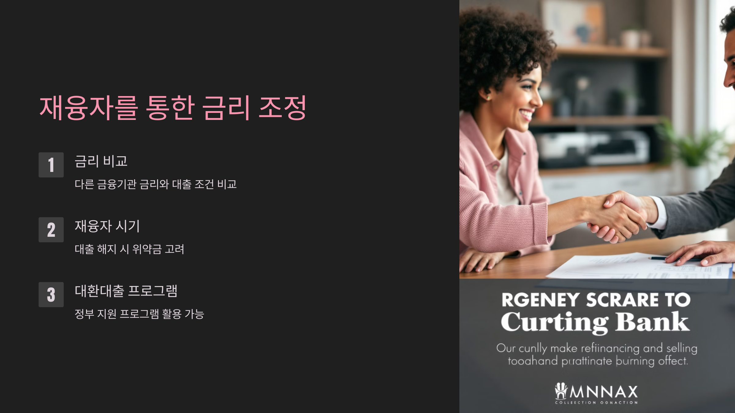 - 금리 비교: 재융자를 고려할 때는 다른 금융기관의 금리와 대출 조건을 꼼꼼히 비교해 보는 것이 중요합니다.