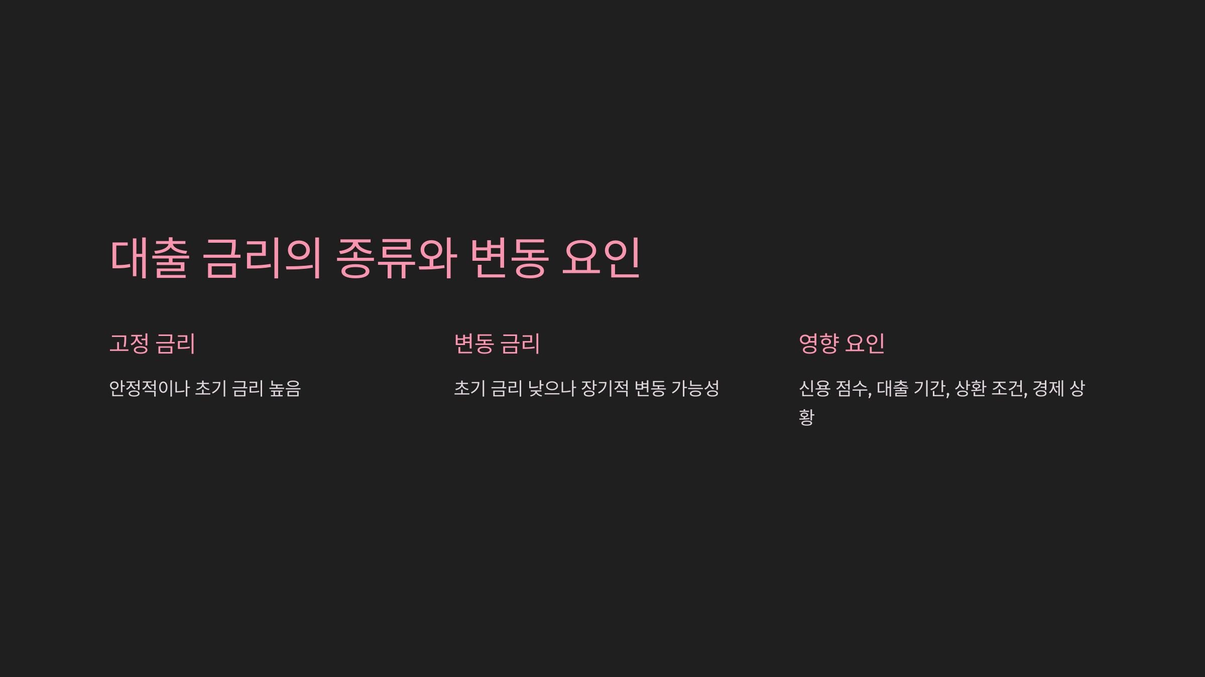 - 고정 금리: 금리 변동이 없어 안정적이지만 초기 금리가 다소 높은 편입니다.