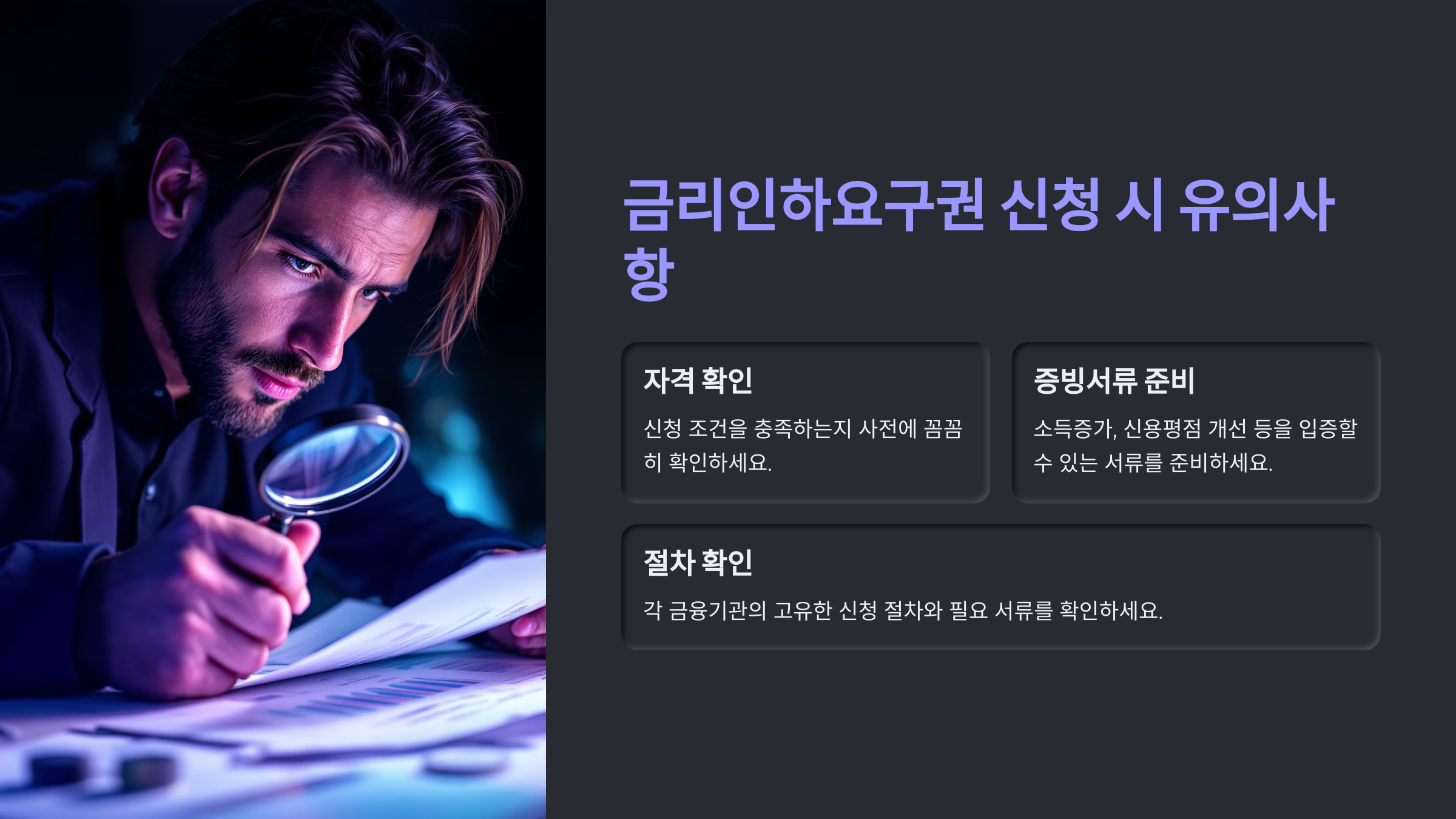 금리인하요구권 신청 시 다음 사항을 유의해야 합니다: