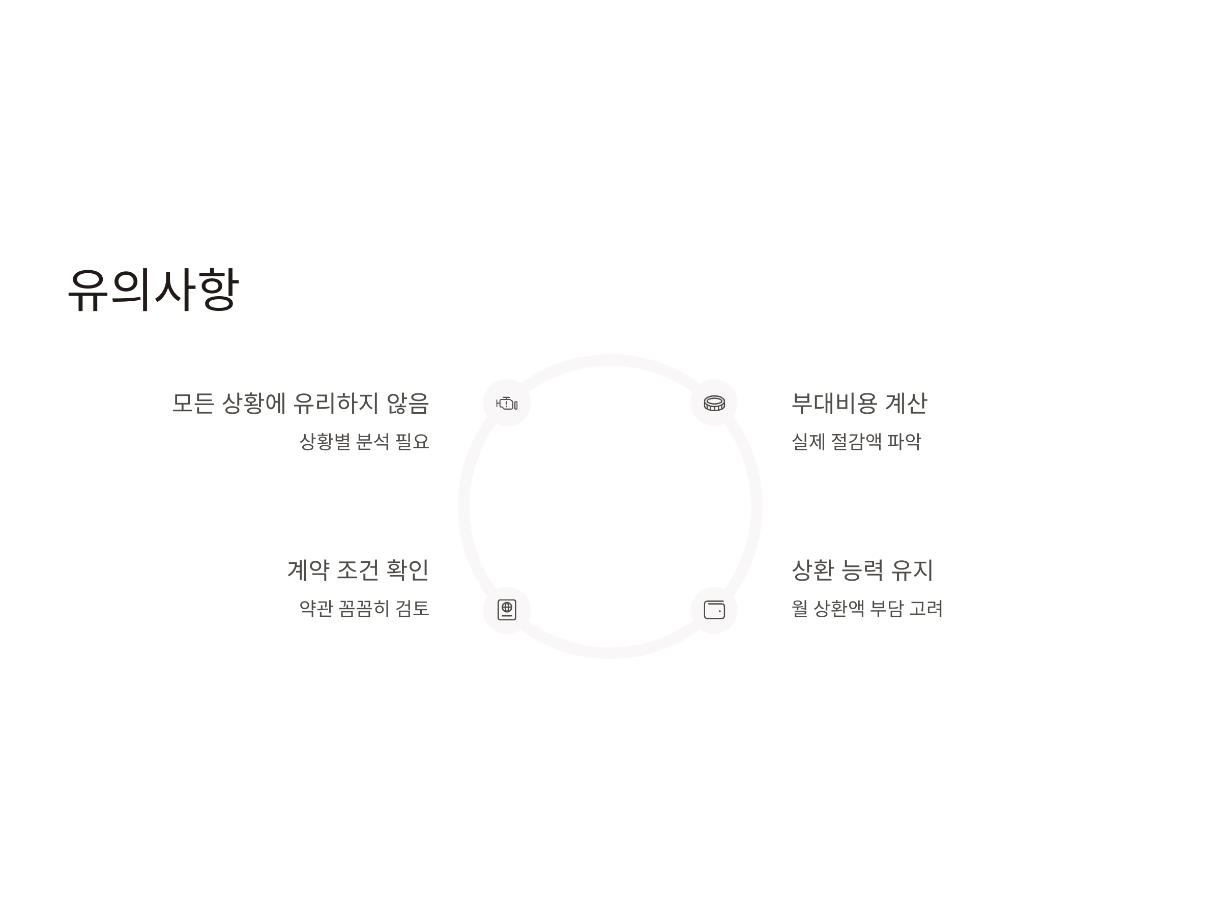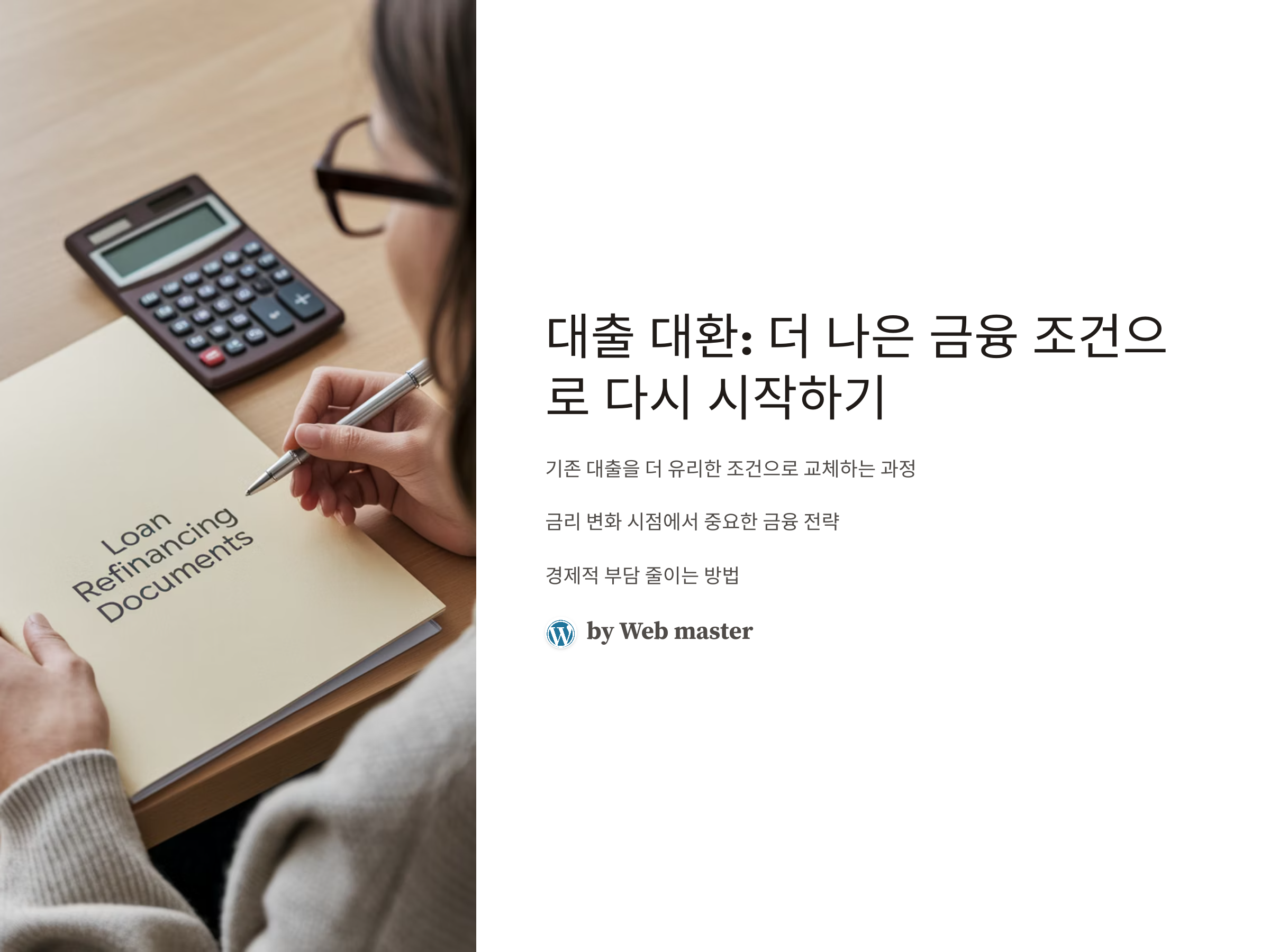 대출 대환을 고려할 때 반드시 기억해야 할 점은 대출 대환이 모든 상황에서 유리한 선택이 아닐 수 있다는 것입니다. 예를 들어, 대출 대환 후 새로운 대출에서 발생하는 수수료나 부대비용이 오히려 기존 대출보다 더 비쌀 수 있습니다. 이러한 비용을 반드시 계산해보고, 대환을 통한 실제 절감액이 어느 정도인지를 파악해야 합니다.