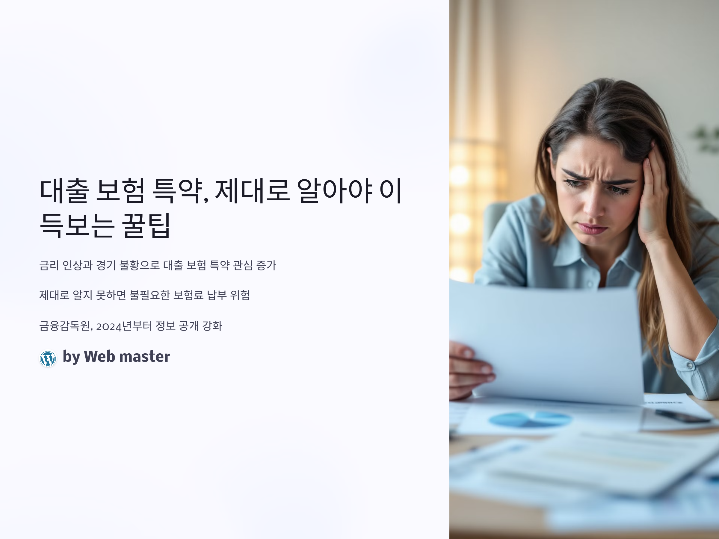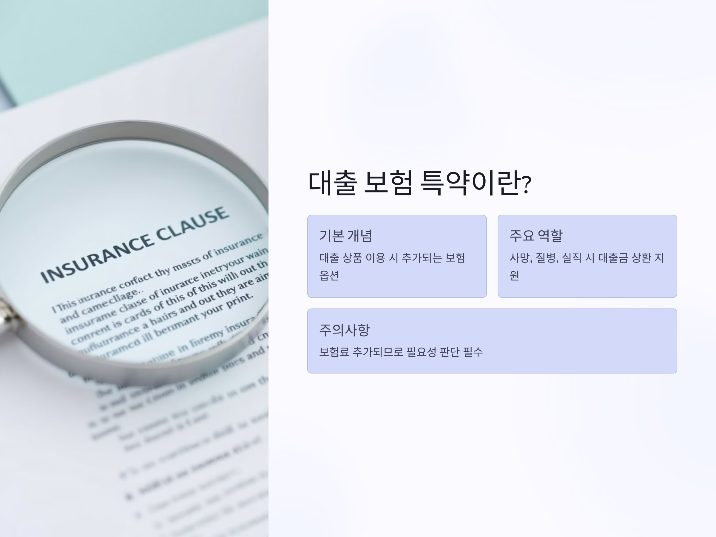 최근 금리 인상과 경기 불황으로 인해 대출을 받는 사람들이 늘어나면서, 대출 보험 특약에 대한 관심도 함께 높아지고 있습니다. 특히, 주택담보대출, 전세자금대출 등 다양한 금융상품에서 보험 특약이 포함된 상품들이 출시되었고, 이를 제대로 알지 못하고 가입하면 불필요한 보험료를 납부하거나, 정작 필요한 보장을 놓칠 수 있어 주의가 필요합니다. 2024년부터 금융감독원이 대출 관련 보험 특약에 대한 정보 공개를 강화하면서, 소비자의 선택권이 더 중요해졌고, 가입 전 꼼꼼한 확인이 필수가 되었습니다. 앞으로는 불필요한 특약을 제거하거나 꼭 필요한 특약만 가입해 보험료 절감이 가능해질 전망이며, 이에 따른 금융사별 혜택 경쟁도 더욱 치열해질 것입니다. 이 글을 통해 대출 보험 특약의 핵심을 짚어보고, 가입 시 꼭 알아야 할 팁과 주의사항을 상세히 안내드립니다.
