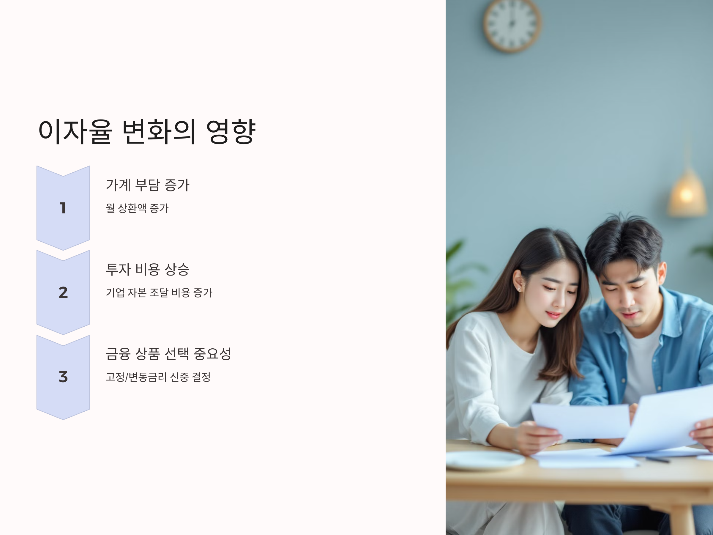 이자율의 변화는 대출자의 경제적 부담과 투자 계획에 큰 영향을 미칩니다.