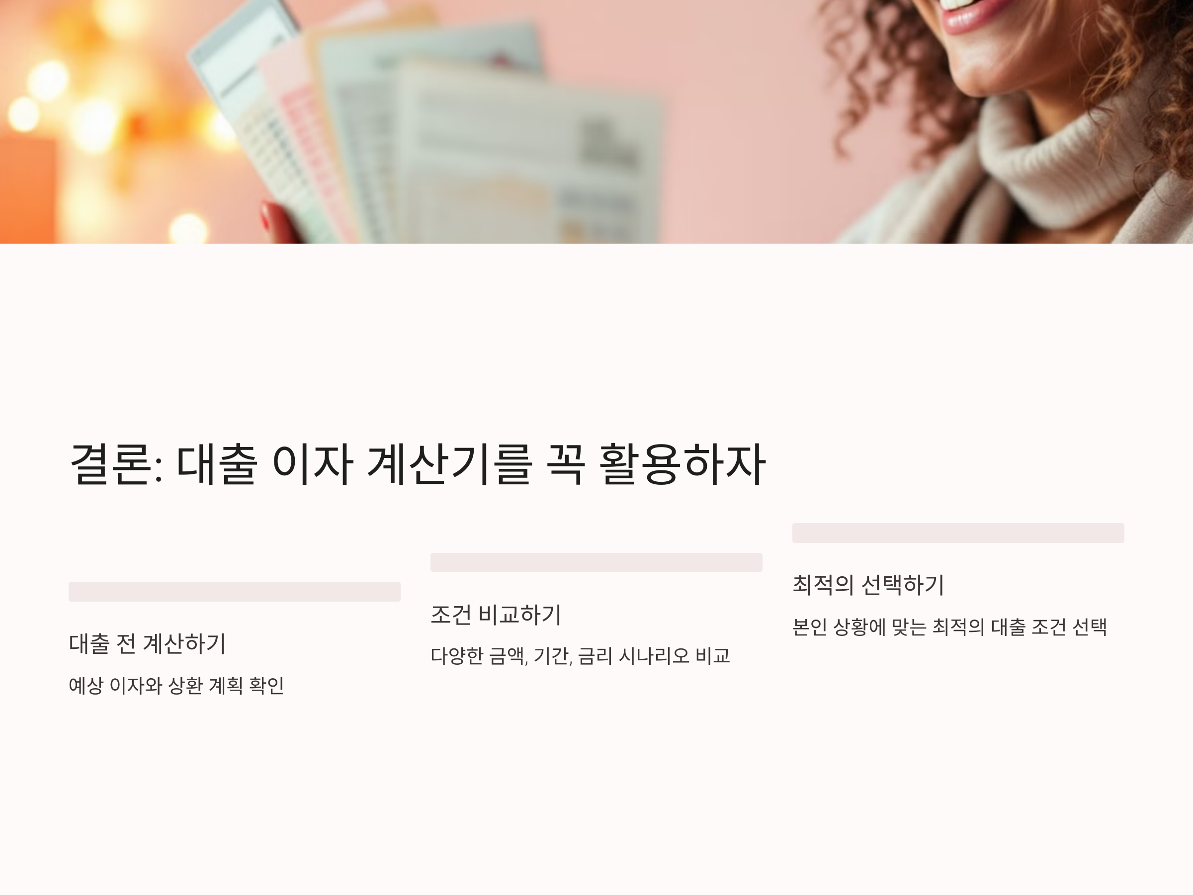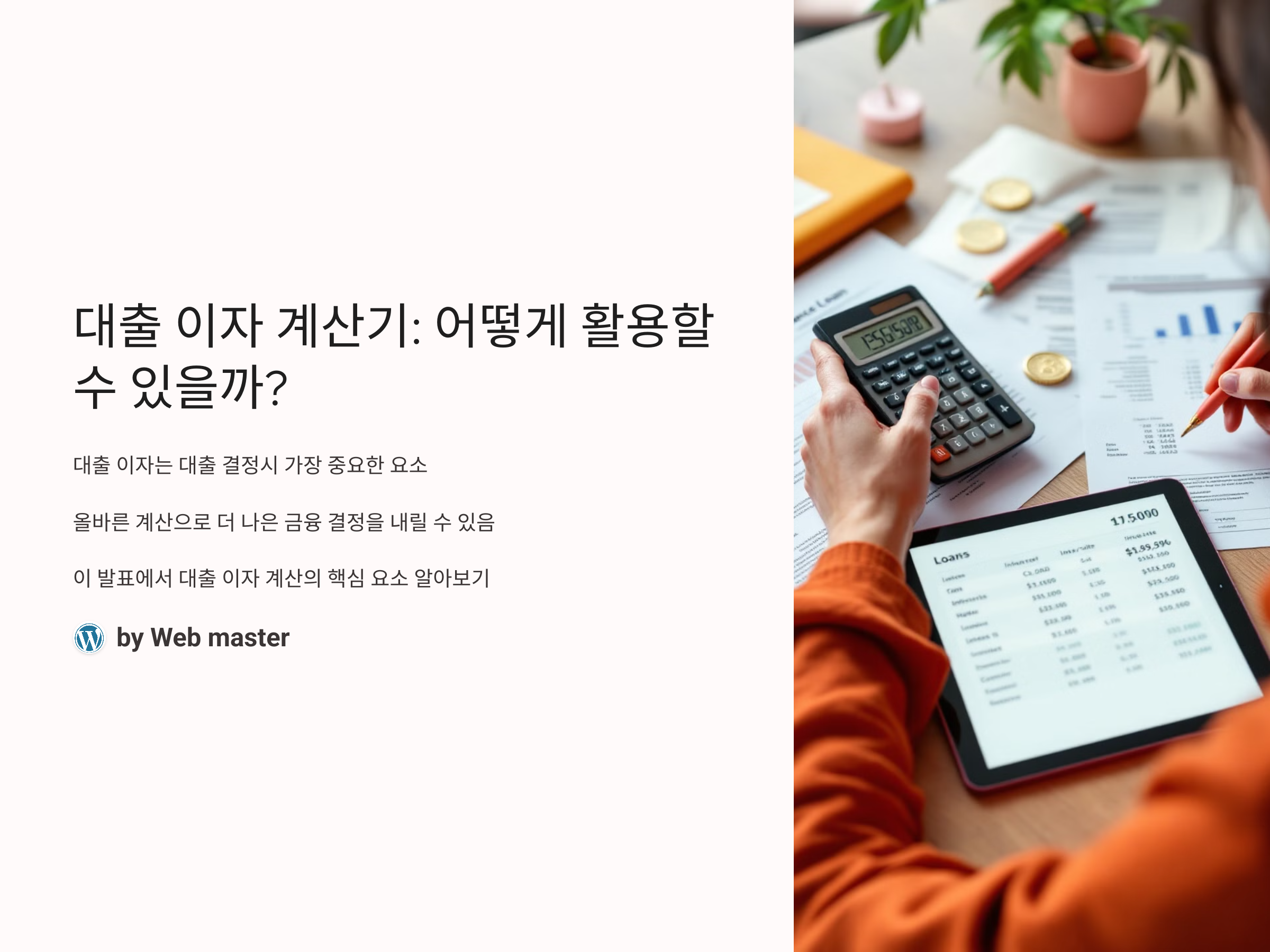 대출을 받기 전 반드시 이자 계산기를 활용하여 본인의 상황에 맞는 최적의 대출 조건을 선택하세요.