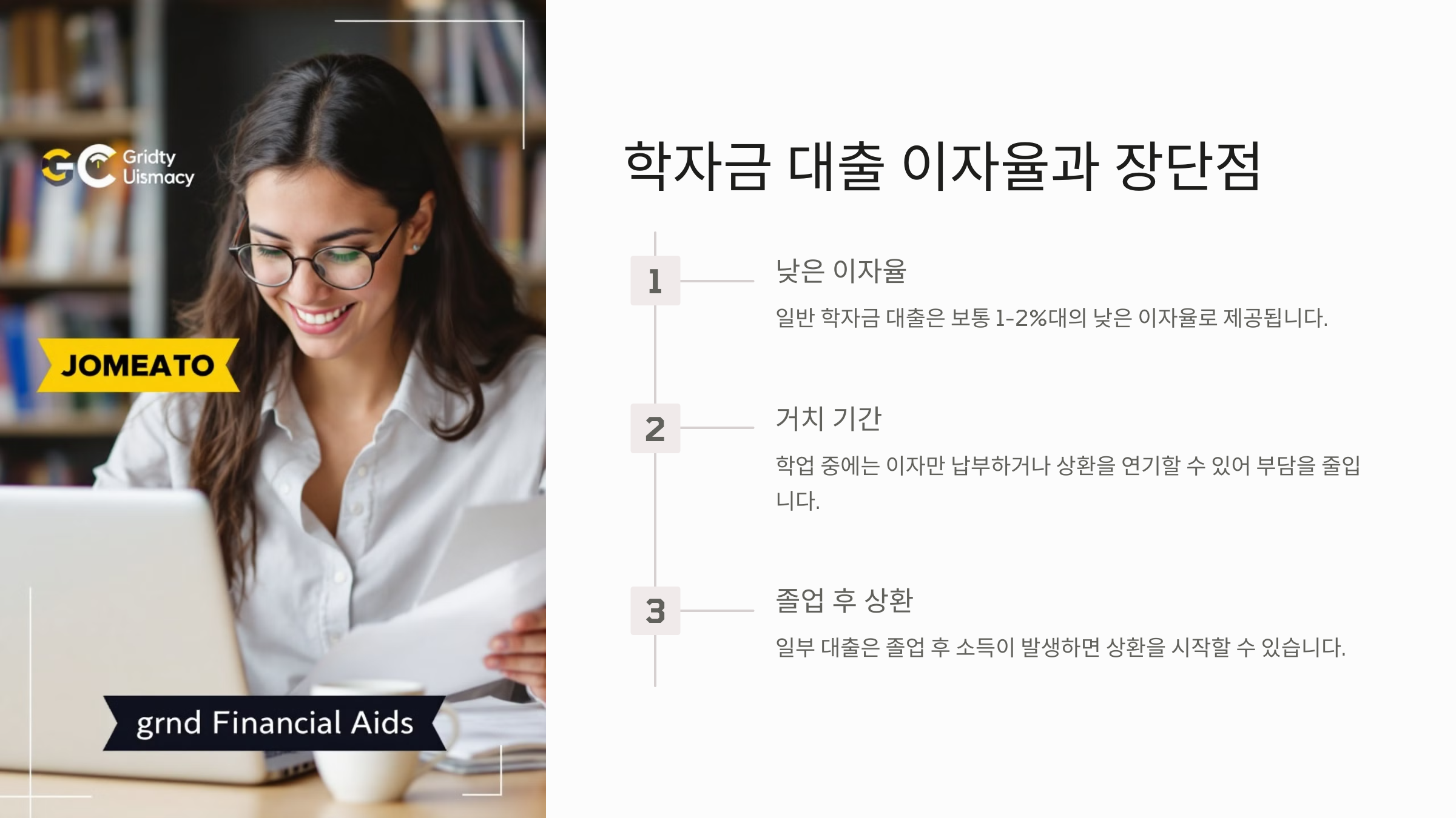 - 거치 기간 제공: 학업 중에는 이자만 납부하거나 상환을 연기할 수 있어 부담을 줄입니다.