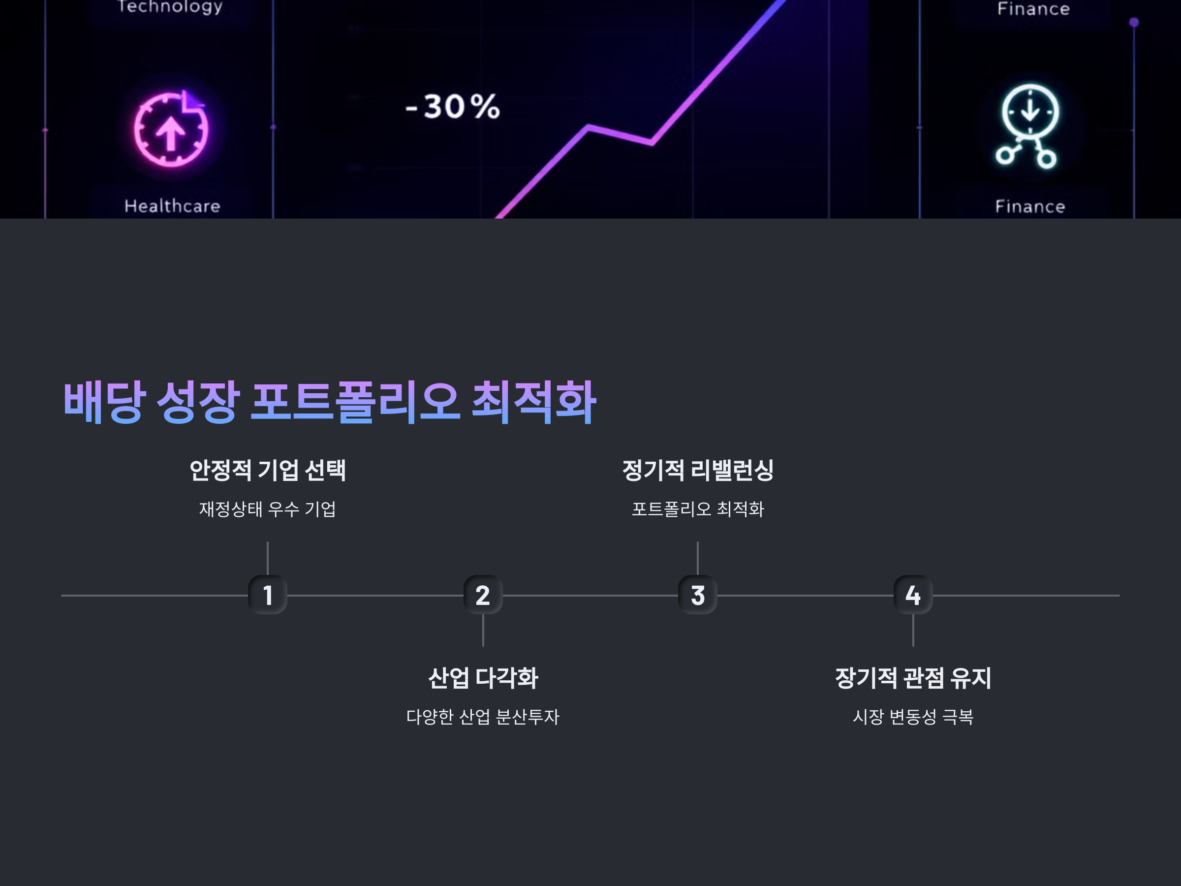 배당 성장 포트폴리오는 특정 산업에만 집중하지 않도록 주의해야 합니다. 다양한 산업에 분산 투자함으로써 산업별 리스크를 분산시킬 수 있습니다.