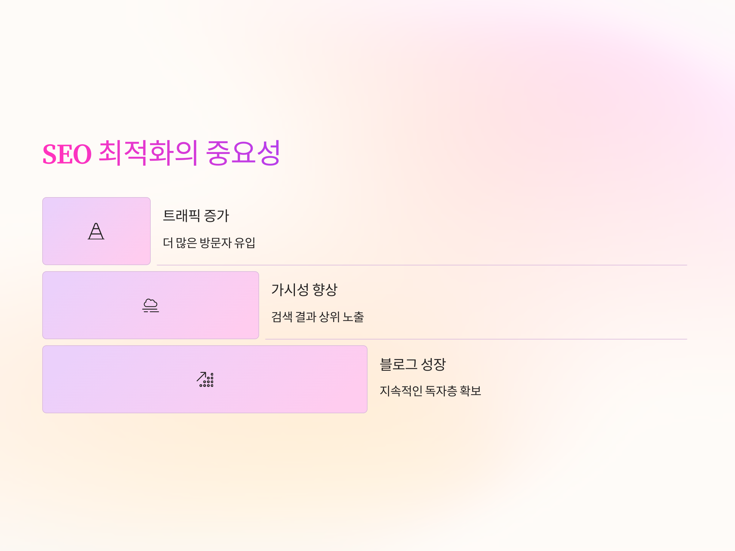SEO 최적화는 어렵지 않지만, 기본적인 원칙과 전략을 이해하고 실천하는 것이 중요합니다. 이를 통해 블로그가 더 많은 사람들에게 도달할 수 있는 기회를 마련할 수 있습니다.