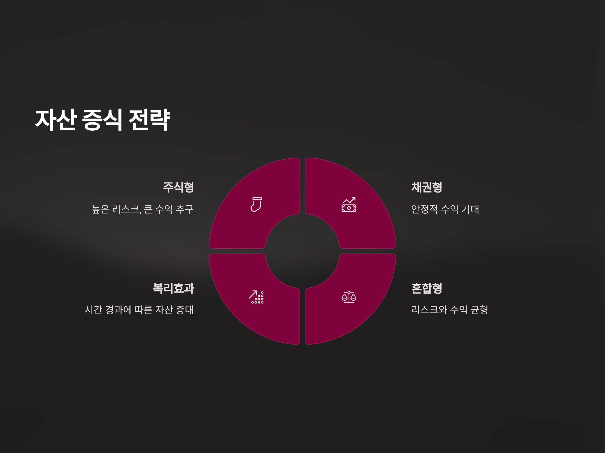 연금저축보험은 단기적인 수익을 기대하는 투자 방식보다는 장기적인 자산 축적을 목표로 한 금융 상품입니다. 이는 안정적인 수익을 추구하는 사람들에게 적합합니다. 투자 방식에 따라 다양한 옵션을 선택할 수 있는데, 보통 주식형, 채권형, 혼합형 등 다양한 포트폴리오 옵션을 제공하고 있습니다. 주식형 포트폴리오는 높은 리스크를 감수하고 더 큰 수익을 추구할 수 있고, 채권형 포트폴리오는 상대적으로 안정적인 수익을 기대할 수 있습니다. 이 두 가지 옵션을 적절히 섞어 투자하는 것이 장기적인 자산 증식에 도움이 될 수 있습니다.