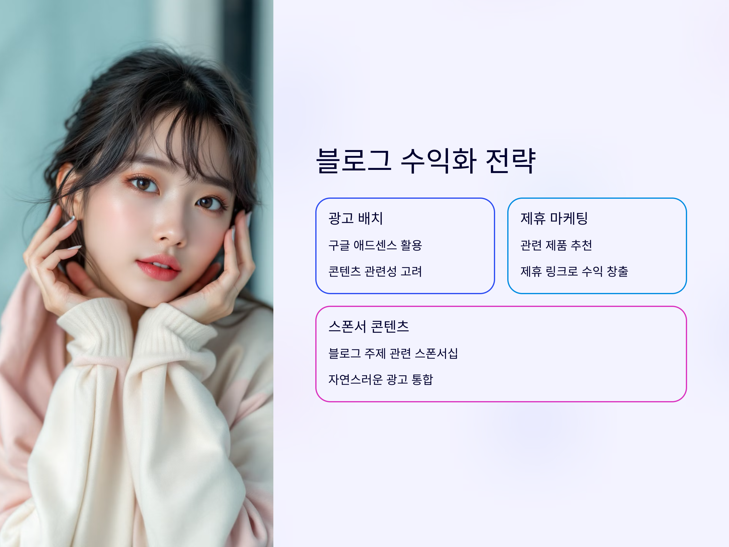 블로그를 통해 수익을 창출하려면 광고 배치와 제휴 마케팅을 활용하는 것이 중요합니다. 구글 애드센스 광고를 활용하여 수익을 창출하거나, 특정 제품을 추천하고 제휴 링크를 통해 수익을 얻을 수 있습니다. 또한, 자신의 블로그에 관련된 스폰서 콘텐츠를 추가하는 것도 좋은 방법입니다.