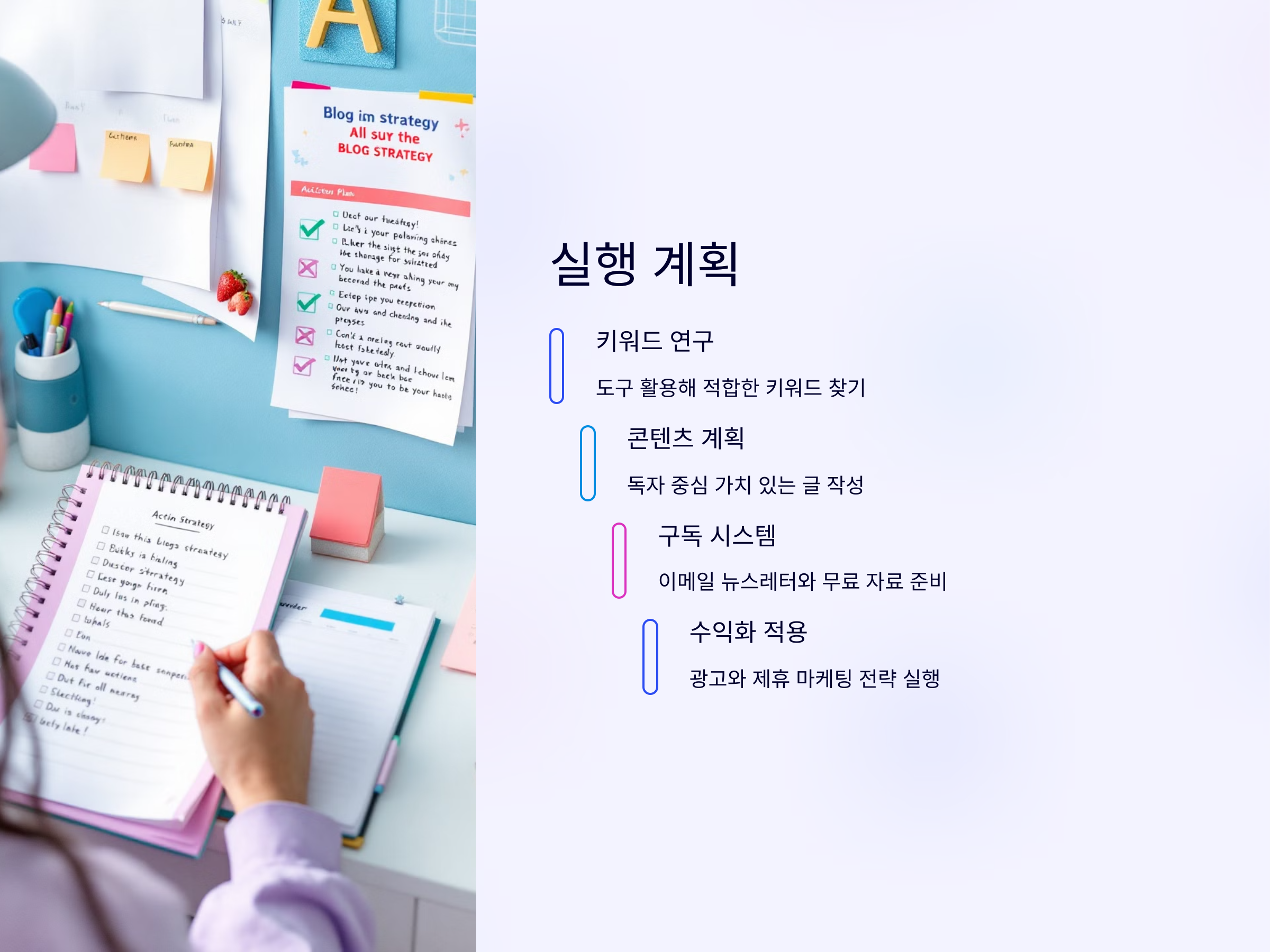 이제 여러분도 이 글에서 제공한 전략을 통해, 블로그의 성장을 이끌어낼 수 있을 것입니다. 구독자를 늘리고, 수익을 창출하는 데 필요한 기본적인 방법을 잘 익히고 적용해보세요. 블로그 콘텐츠의 SEO 최적화와 구독자 유도 전략을 잘 활용하여, 더 나은 결과를 얻을 수 있습니다.