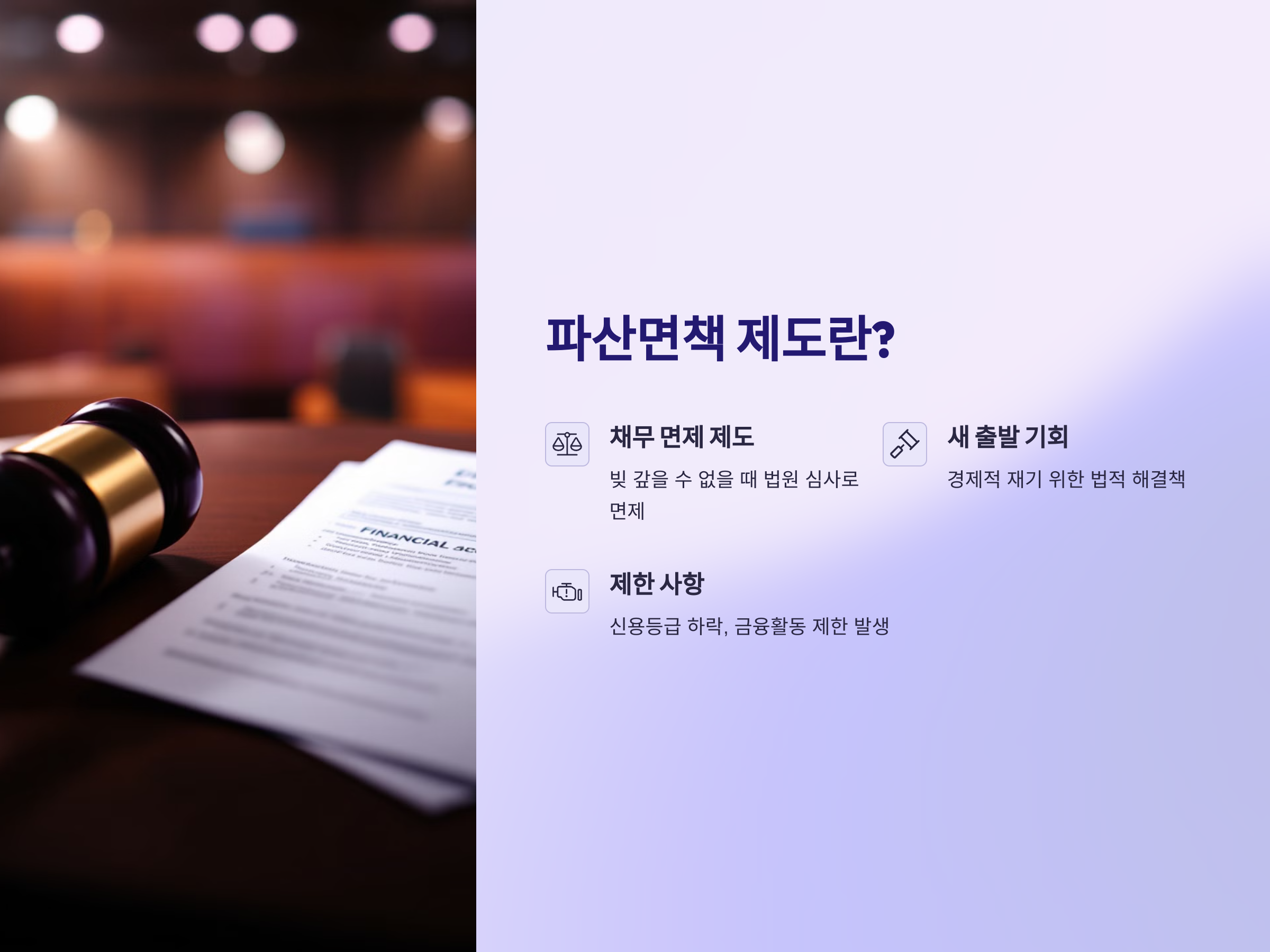 파산면책은 반드시 법원의 심사를 거쳐야 하며, 조건에 맞는 채무자만 신청할 수 있습니다. 이 절차를 통해 빚을 탕감받을 수 있지만, 파산면책을 받은 후에도 일정 기간 동안 신용 등급이 떨어지고, 금융 활동에 제한이 있을 수 있다는 점을 이해해야 합니다.