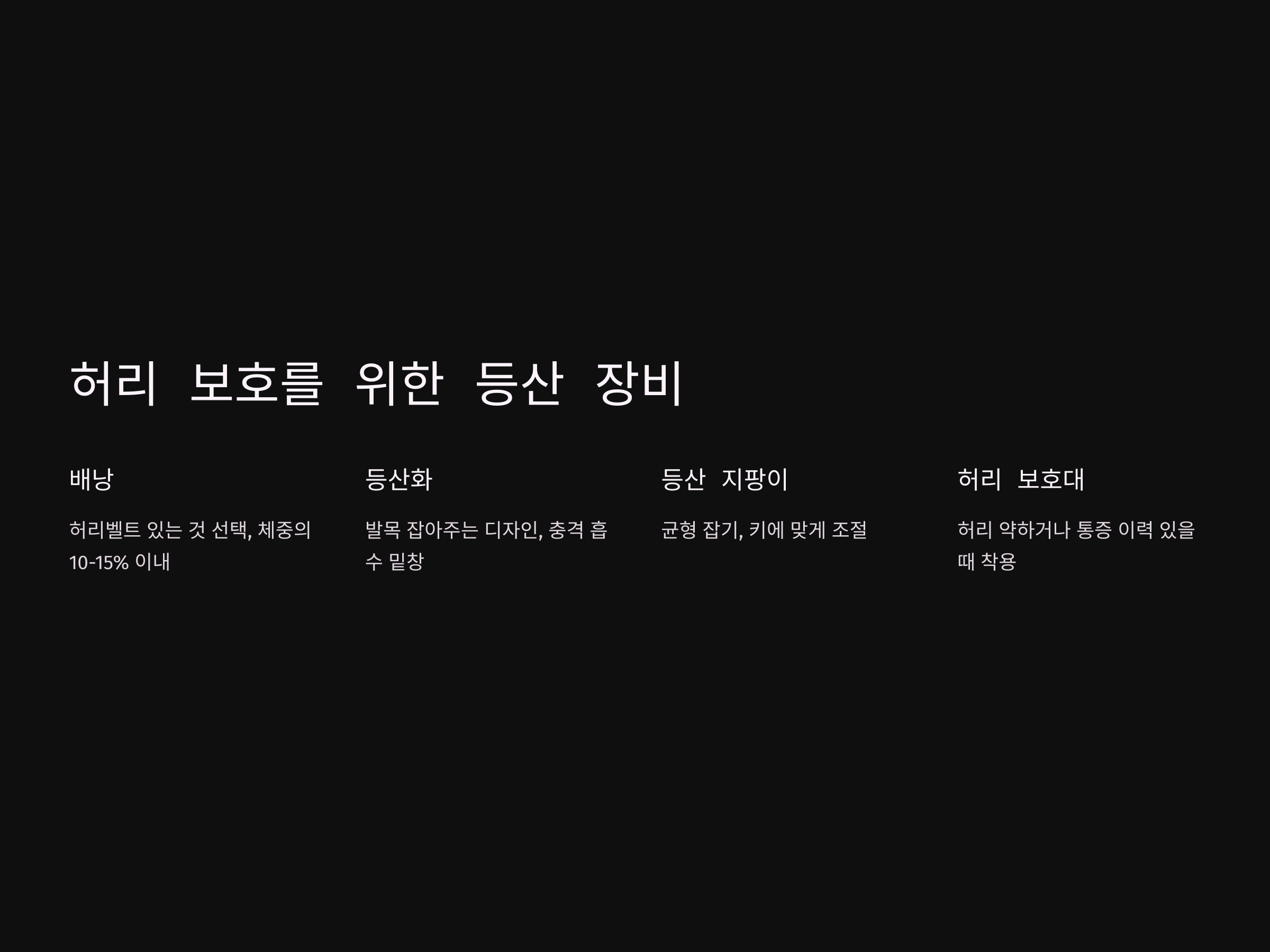 적절한 장비는 허리 건강을 지키는 데 매우 중요합니다. 등산 장비를 선택할 때 아래 사항을 고려하세요.