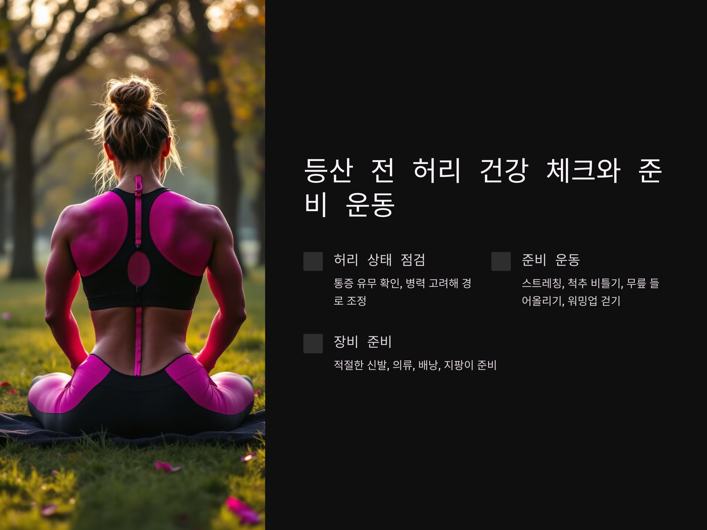 등산 전 허리 건강 체크와 준비 운동