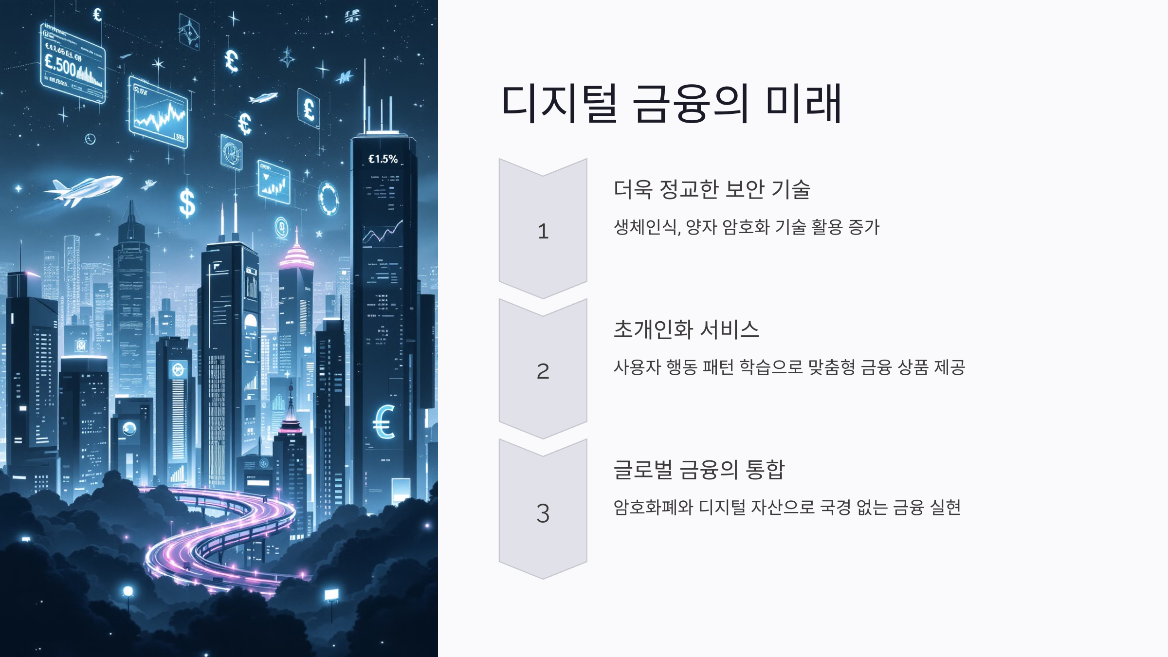 - 초개인화 서비스: 사용자의 행동 패턴을 학습해 적시에 맞춤형 금융 상품 제공.