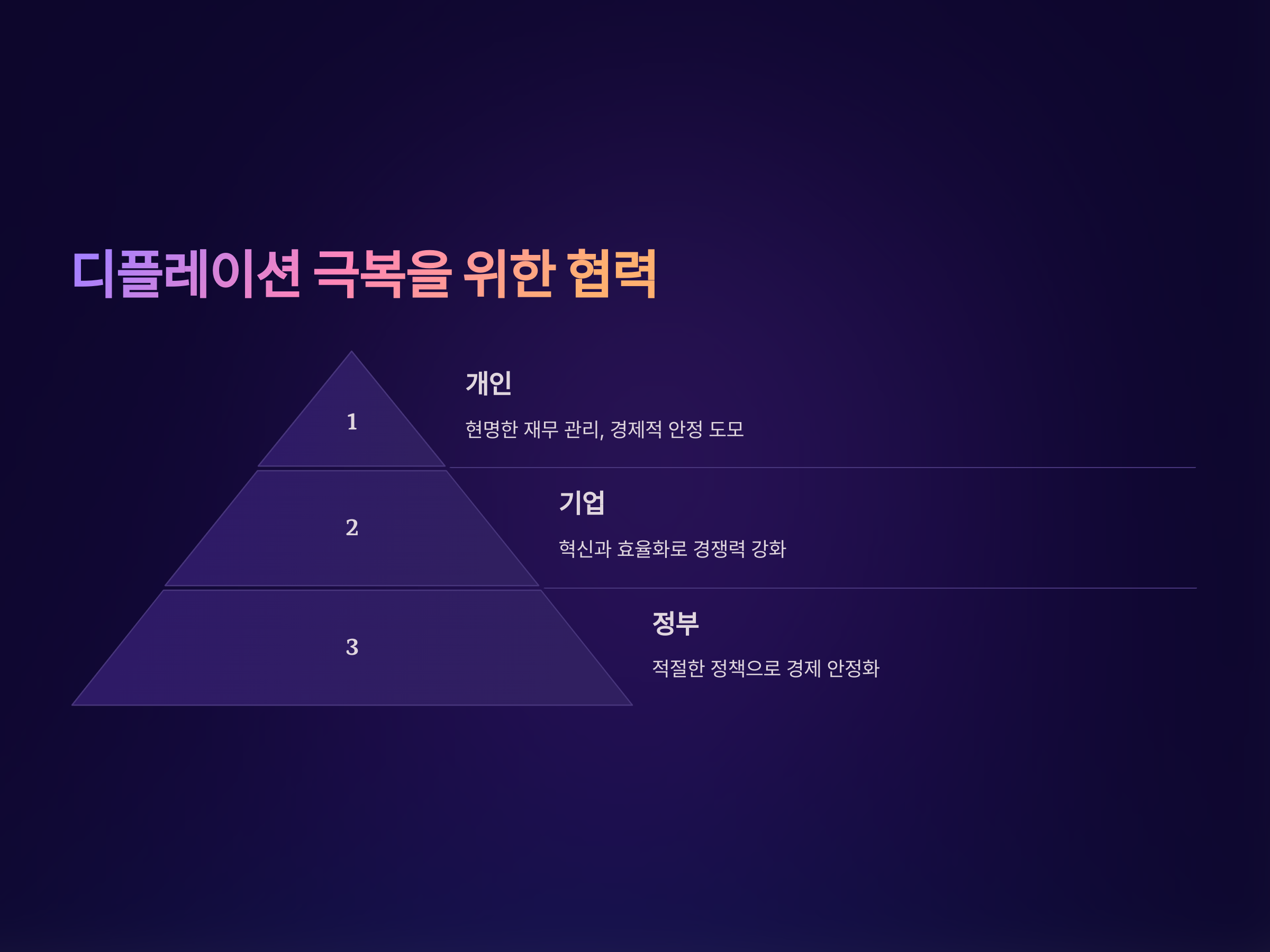 디플레이션은 단순한 물가 하락을 넘어 경제 전반에 심각한 영향을 미치는 복합적인 문제입니다. 이를 극복하기 위해서는 정부, 기업, 개인 모두의 협력이 필요합니다. 정부는 적절한 정책을 통해 경제를 안정시키고, 기업은 혁신과 효율화를 통해 경쟁력을 강화하며, 개인은 현명한 재무 관리를 통해 경제적 안정을 도모해야 합니다.