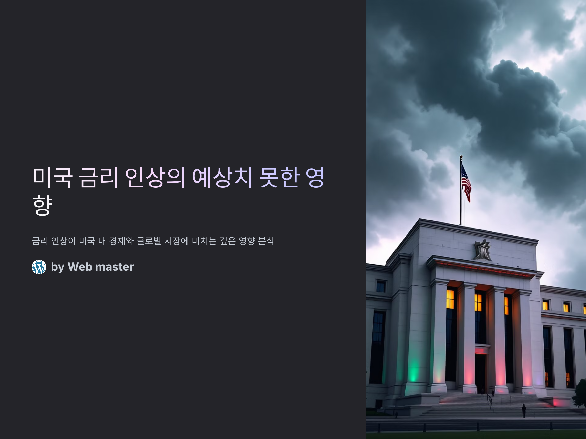 미국의 금리 인상은 단순히 금융 전문가들만의 이야기가 아닙니다. 모든 경제 주체에게 직접적인 영향을 미치는 중요한 경제 이벤트입니다. 금리 인상이 미국 내 경제뿐만 아니라 글로벌 시장에도 깊은 영향을 미치기 때문에, 그 변화를 이해하는 것은 매우 중요합니다. 최근 금리가 급격히 인상된 상황에서, 그 파장이 어떻게 나타날지에 대한 예측과 실제 영향을 알아보겠습니다.