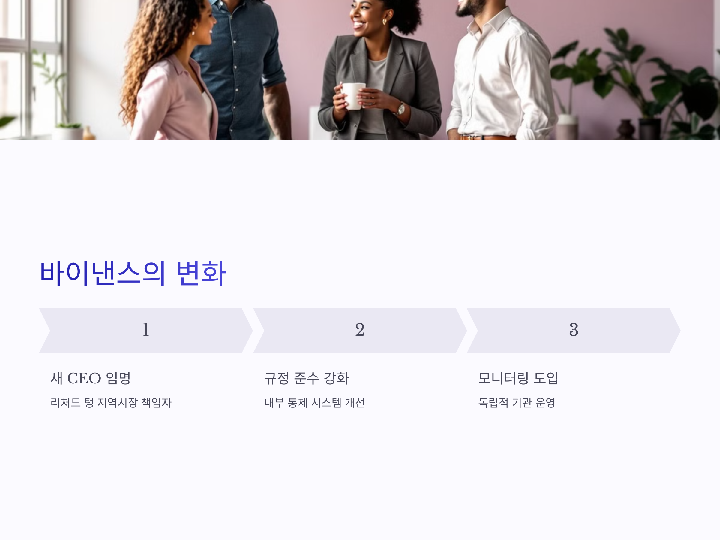 창펑 자오의 사임 이후, 바이낸스는 리처드 텅 지역시장 책임자를 새로운 CEO로 임명하였습니다. 회사는 규정 준수 프로그램을 강화하고, 독립적인 모니터링 기관을 도입하는 등 내부 통제 시스템을 개선하고 있습니다. 이러한 변화는 바이낸스가 글로벌 가상자산 시장에서 신뢰를 회복하고, 지속 가능한 성장을 이루기 위한 노력의 일환입니다. citeturn0search0