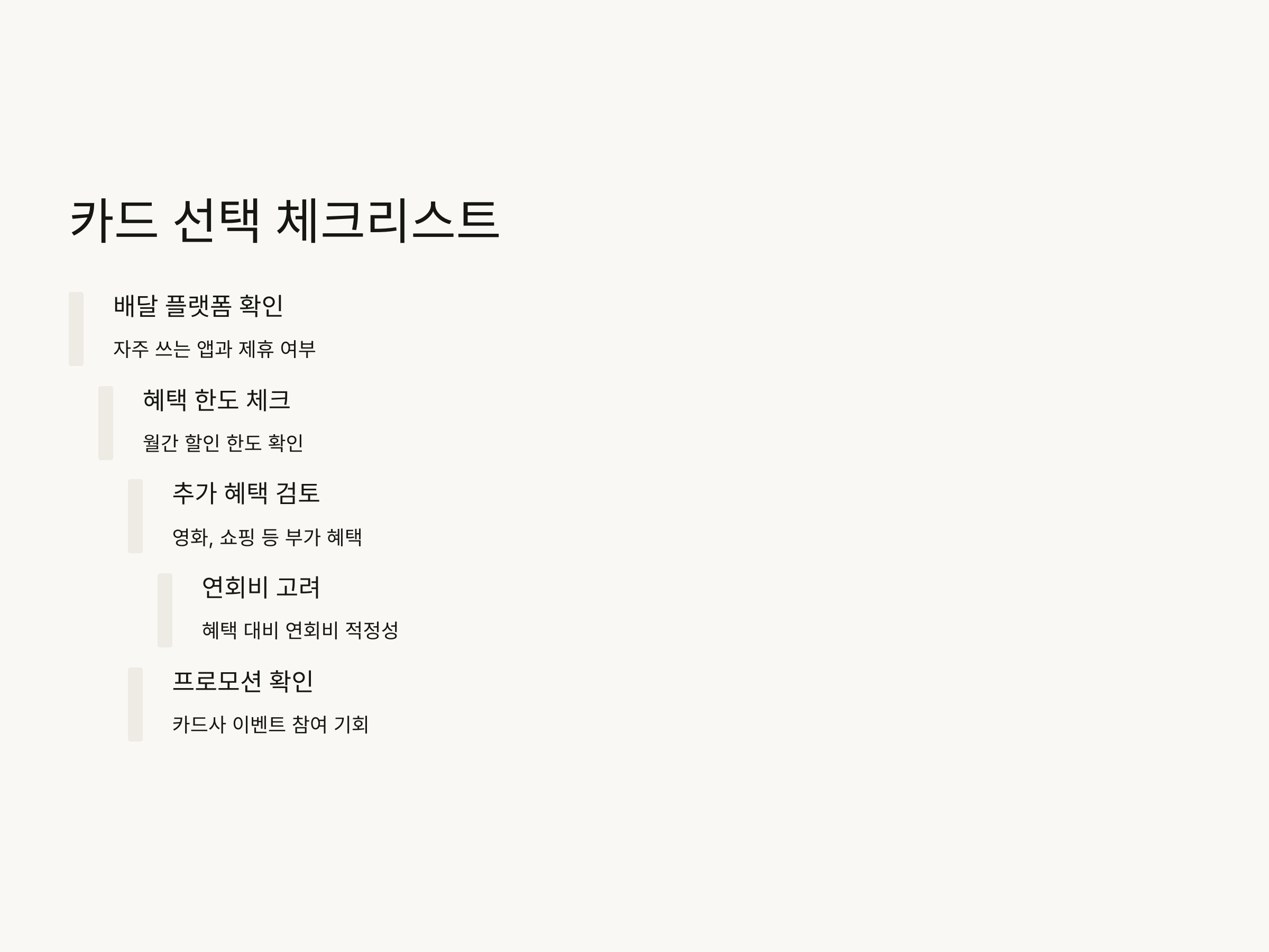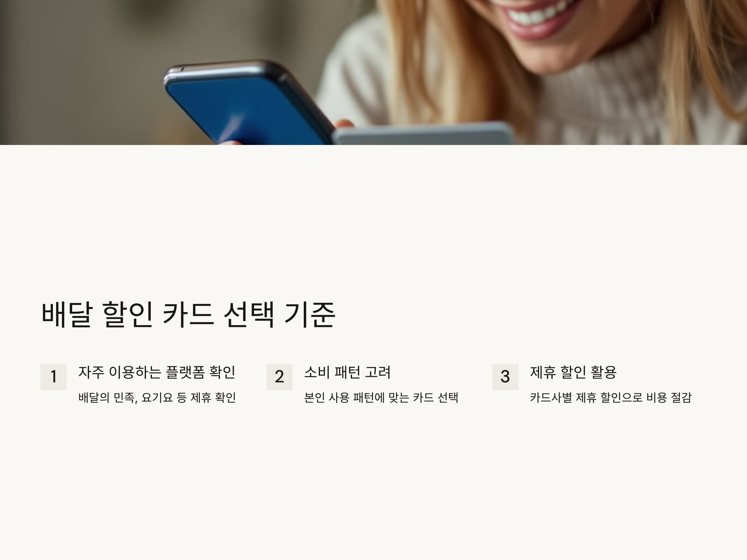 배달 할인 카드를 고를 때, 다음과 같은 체크리스트를 고려해보세요: