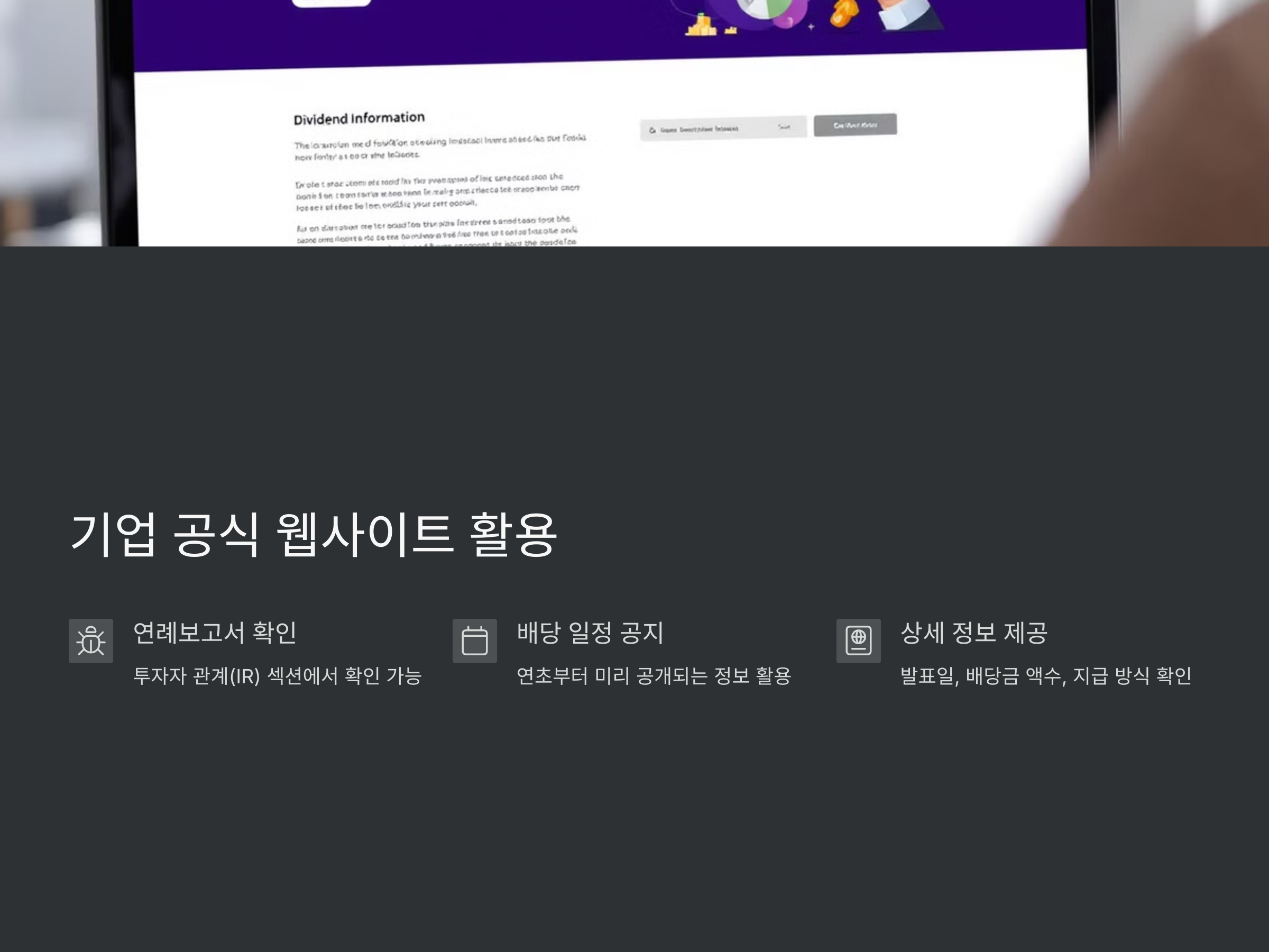 배당금 지급일을 확인하는 가장 신뢰할 수 있는 방법은 해당 기업의 공식 웹사이트에서 확인하는 것입니다. 대부분의 기업은 정기적으로 발표하는 연례보고서나 분기보고서를 통해 배당금 지급 일정을 공지합니다. 이 보고서는 기업의 공식 웹사이트에서 투자자 관계(IR) 섹션에서 확인할 수 있습니다. 배당금 지급일과 관련된 정보는 연초부터 미리 공개되기 때문에, 이를 통해 올해의 배당금 지급일을 확인할 수 있습니다.