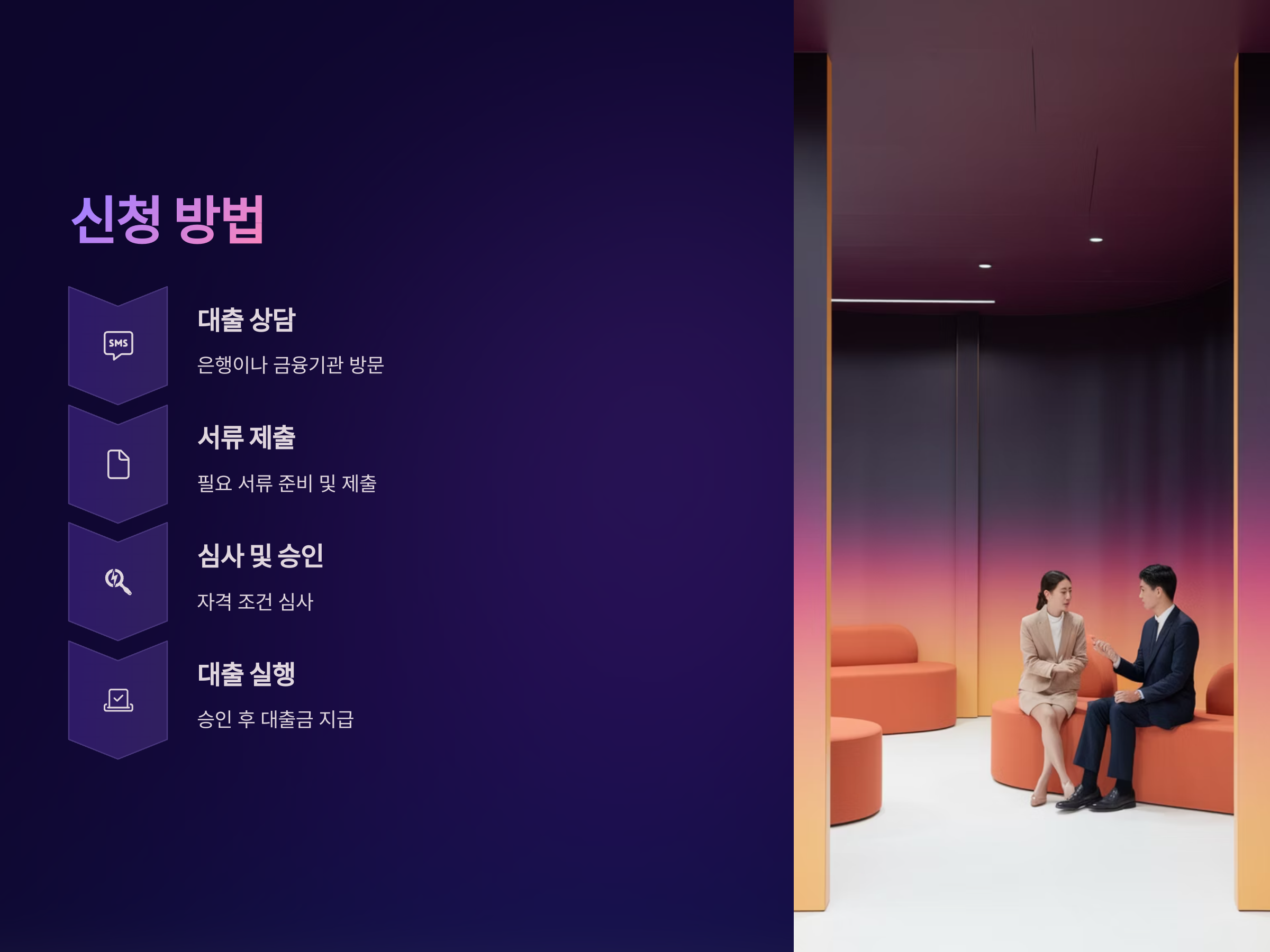 - 심사 및 승인: 신청자의 자격 조건을 심사하고, 대출 승인이 이루어집니다.