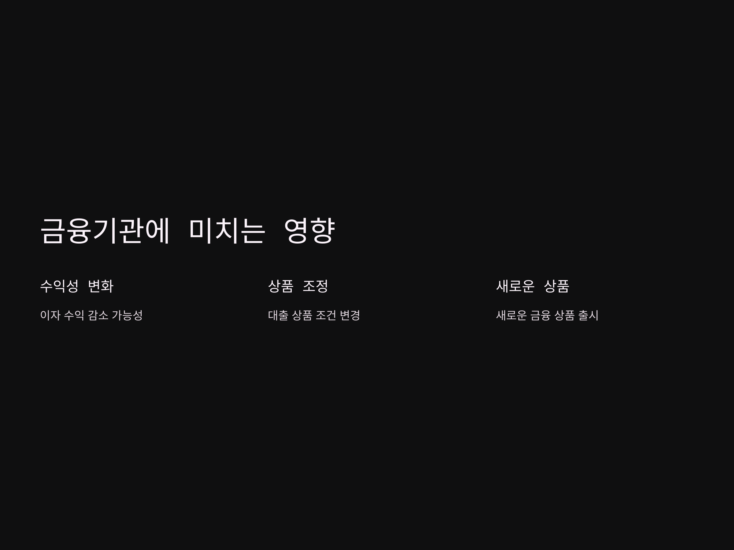 하지만, 이러한 변화는 동시에 일부 금융기관에게는 부담이 될 수 있습니다. 금리 상한선이 낮아지면서 일부 대출 상품에 대한 금리가 줄어들게 되면, 금융기관은 더 이상 높은 이자 수익을 기대하기 어려울 수 있습니다. 이러한 상황에서 금융기관들이 대출 상품의 조건을 조정하거나, 새로운 금융 상품을 출시하는 등의 대응을 할 수 있습니다.
