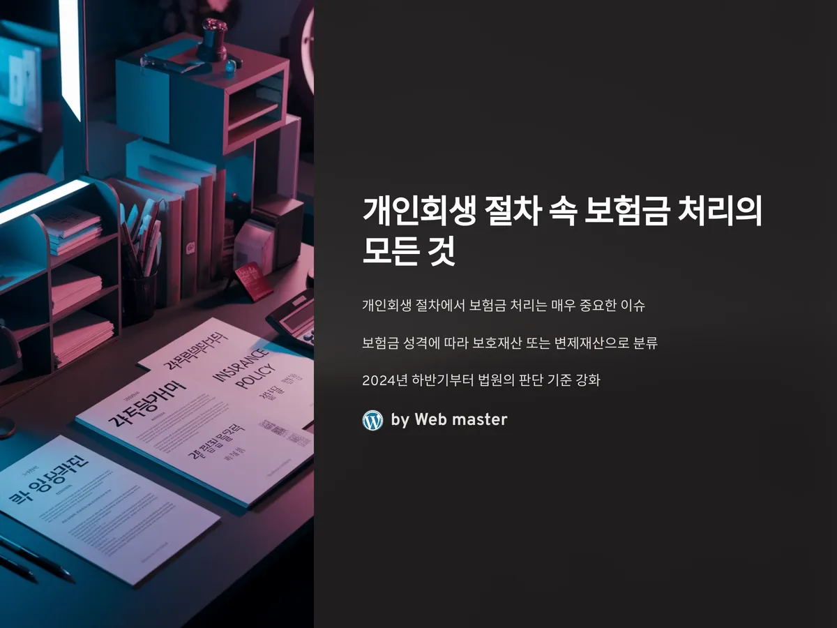 이 글에서는 개인회생 절차 중 보험금이 어떤 기준에 따라 처리되며, 채무자가 주의해야 할 법적 포인트는 무엇인지, 실제 사례를 통해 꼼꼼하게 정리하였습니다. 또한 보험금 수령 시점과 신청 시점이 미치는 영향, 법원의 최신 판단 경향 등을 모두 반영하여, 예기치 않은 피해를 막을 수 있는 팁도 함께 제공합니다. 이 글을 통해 보험금도 안전하게 지키고, 개인회생 절차도 현명하게 준비하시기 바랍니다.