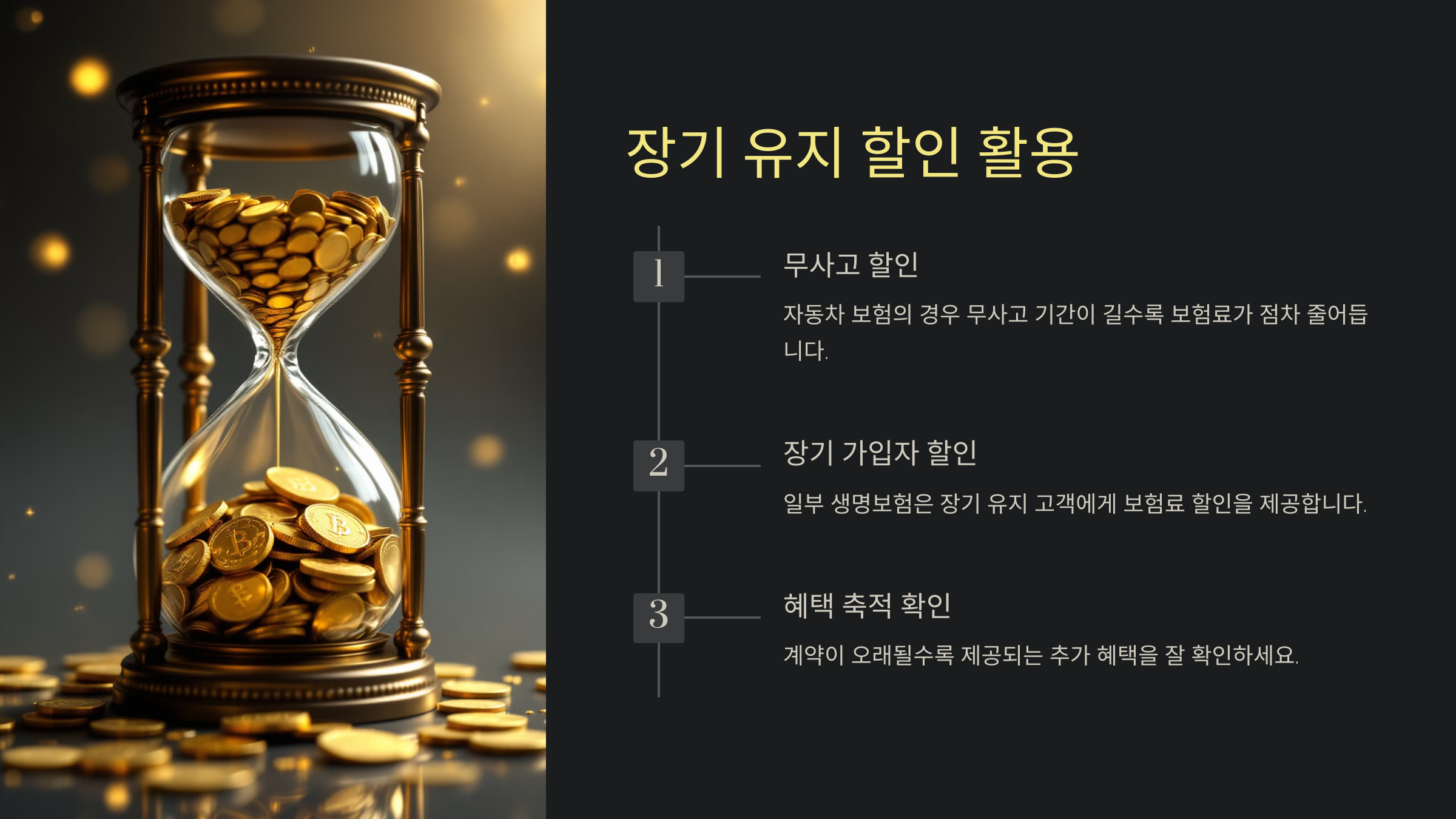 주의: 단기적인 보험료 절감만을 위해 해지하거나 변경하면 장기 유지 혜택을 놓칠 수 있습니다.