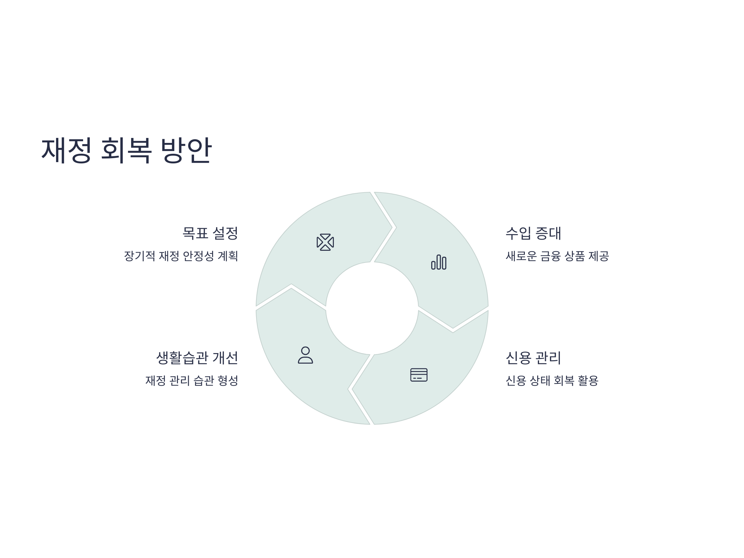 회복된 신용 상태를 활용해 새로운 대출을 받거나, 추가적인 금융 상품을 제공하는 등의 방법을 고려할 수 있습니다. 이를 통해 수입을 더욱 증대시키고, 장기적인 재정 안정성을 확보할 수 있습니다. 또한, 개인회생 후에는 신용 관리가 매우 중요하기 때문에, 재정적 독립을 위한 목표를 세우고 철저히 계획을 실행하는 것이 필요합니다.