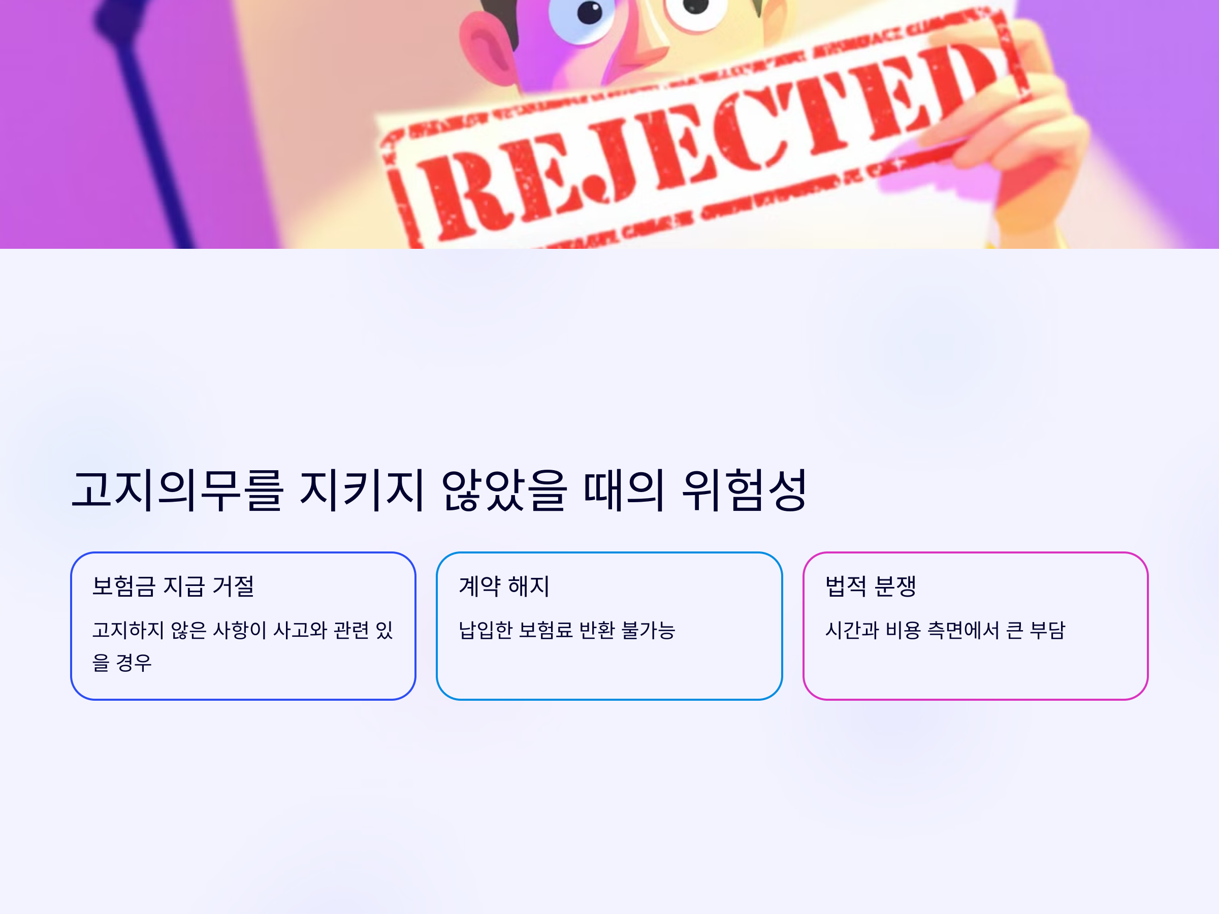 - 법적 분쟁 발생: 고지의무 위반으로 인한 분쟁이 발생할 수 있으며, 이는 시간과 비용 측면에서 큰 부담이 될 수 있습니다. citeturn0search6