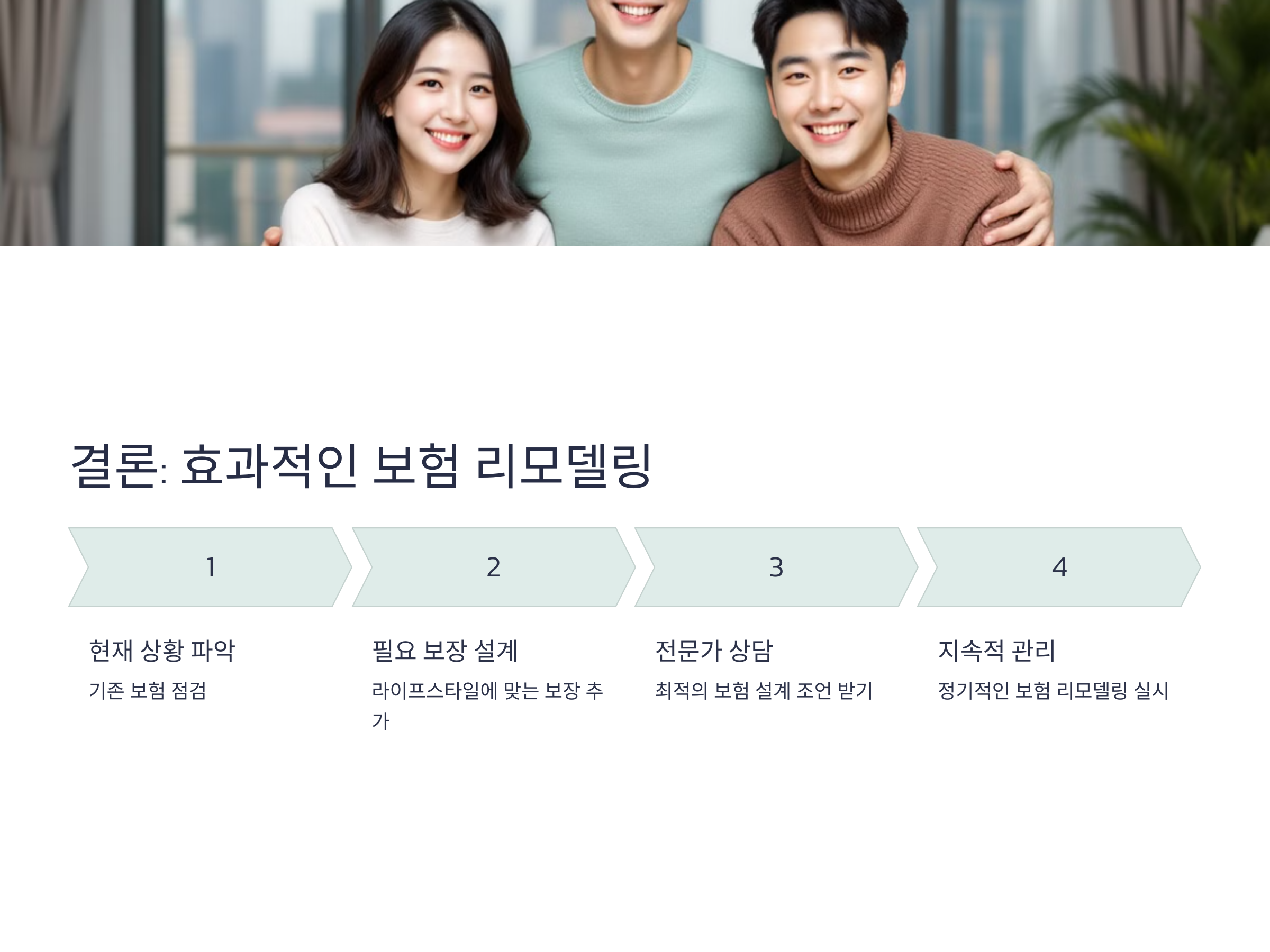 보험 리모델링은 단기적인 비용 절감뿐만 아니라, 장기적으로 더 나은 보장과 경제적 안전망을 구축하는 과정입니다. 현재 가입된 보험을 점검하고, 필요에 맞는 보장을 추가하거나 중복된 보장을 제거하는 방식으로 더 효율적인 보험 설계를 할 수 있습니다. 이를 통해 보다 안전하고 건강한 삶을 누릴 수 있습니다.