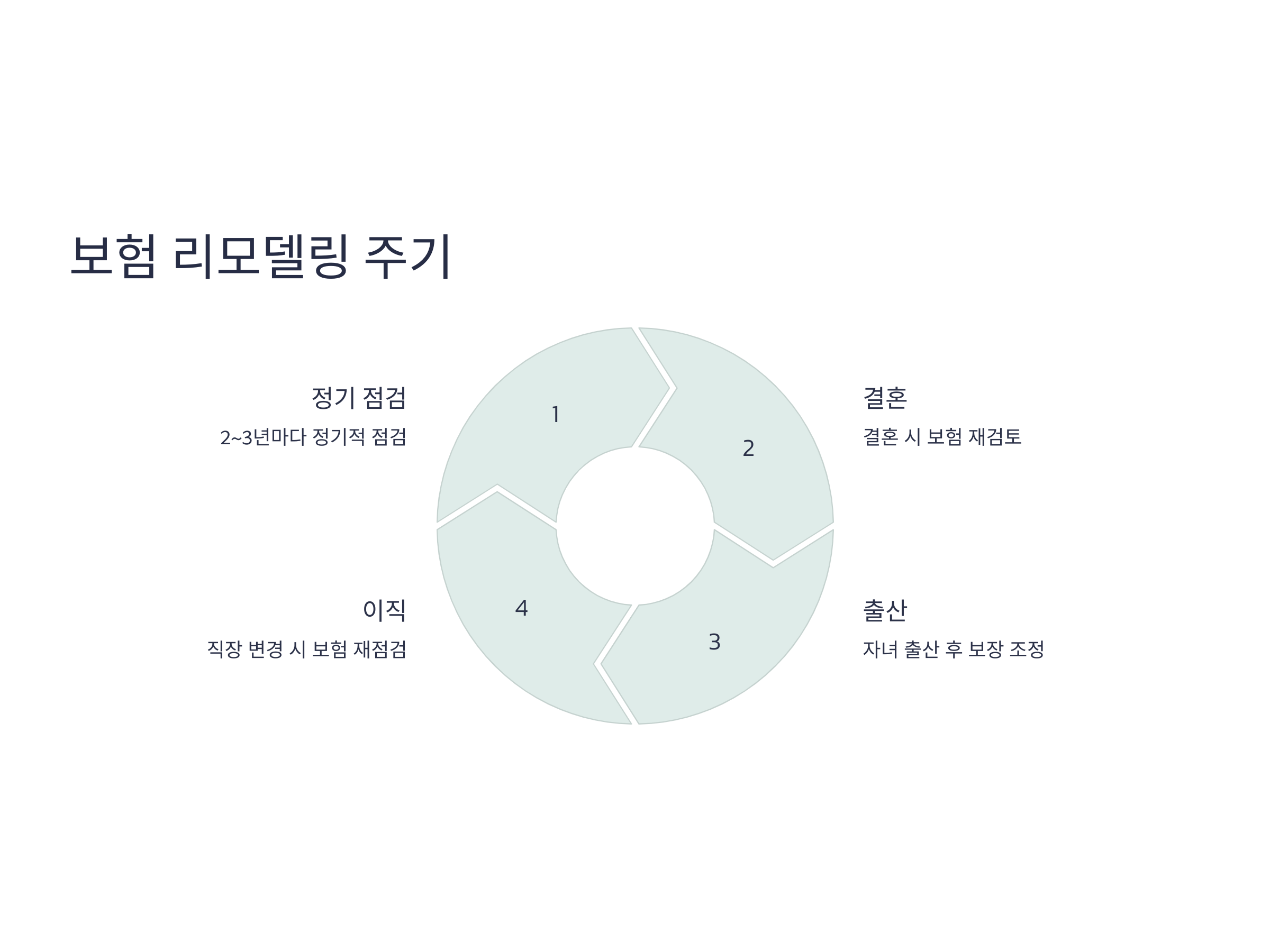 보험 리모델링의 주기는 개인의 라이프스타일 변화에 따라 달라집니다. 일반적으로 2~3년마다 점검하는 것이 좋지만, 중요한 인생의 변화(결혼, 출산, 이직 등)가 있을 때마다 점검하는 것이 바람직합니다.