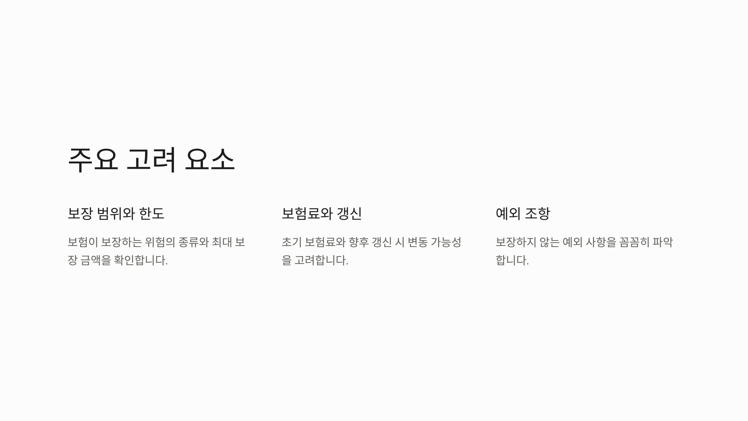 - 보험 가입 후 유지비용 및 갱신 조건 등을 사전 파악