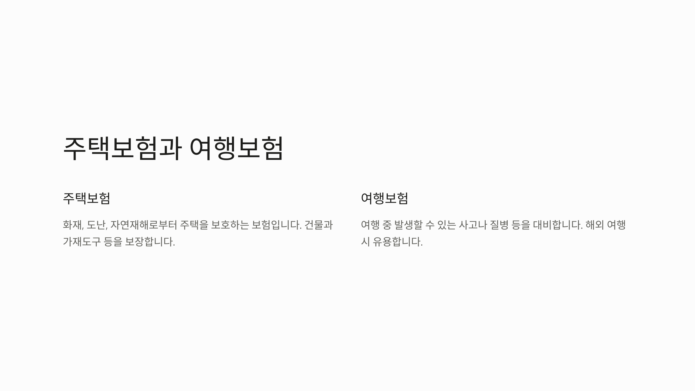 - 주택보험은 화재, 도난, 자연재해로부터 주택을 보호하는 보험으로, 건물과 가재도구 등에 대해 보장합니다. 주택보험은 특히 재해가 발생할 위험이 큰 지역에서 필수적입니다.