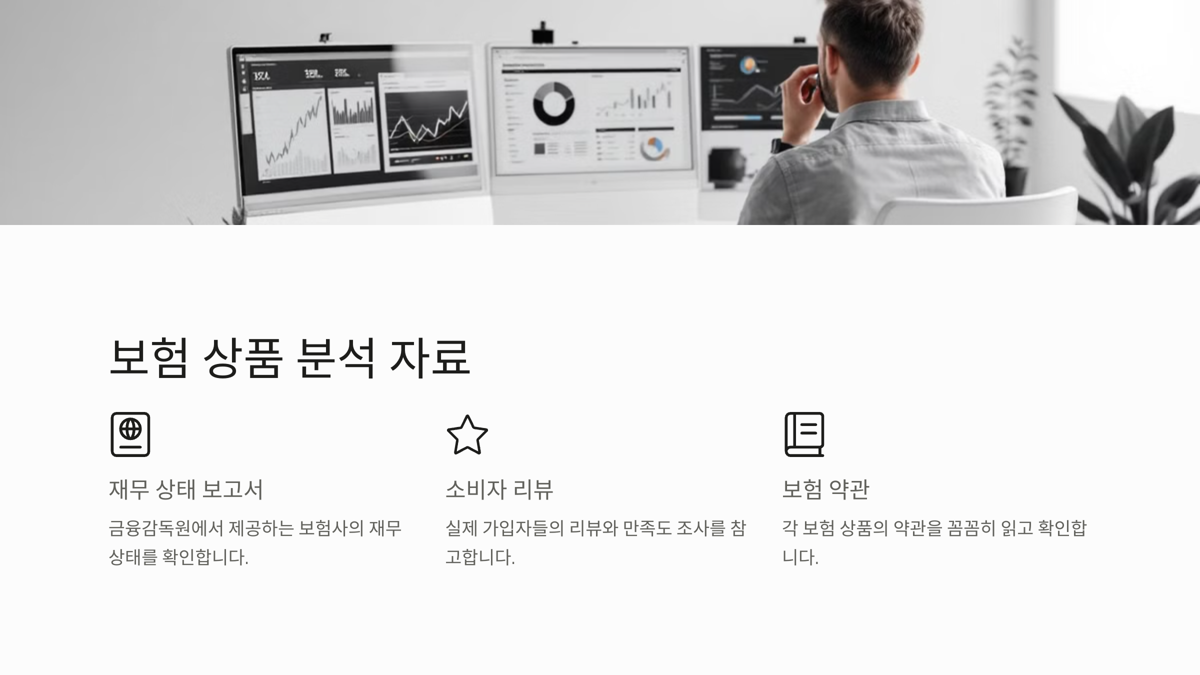 보험 상품의 보장 내용뿐만 아니라, 보험사의 재정 건전성도 중요한 평가 요소입니다. 금융감독원에서 제공하는 보험사의 재무 상태 보고서나 지급 능력 평가 결과 등을 통해 해당 보험사의 안정성을 확인할 수 있습니다.