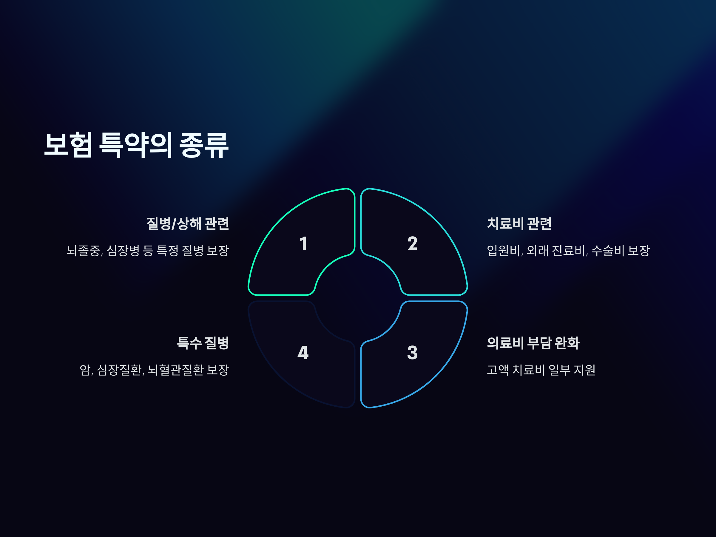 - 특수 질병 특약: 예를 들어, 암, 심장 질환, 뇌혈관 질환 등 특정 질병에 대한 보장을 추가할 수 있는 특약입니다.
