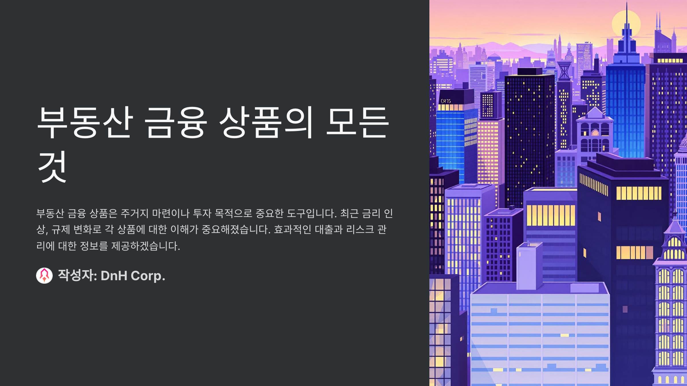 부동산 금융 상품은 주거지 마련이나 투자 목적으로 부동산을 구매할 때 자금을 마련할 수 있는 중요한 도구입니다. 최근에는 금리 인상, 규제 변화, 경제 상황에 따라 부동산 금융 상품의 종류와 조건이 변화하고 있어, 각 상품에 대한 이해가 그 어느 때보다 중요해졌습니다. 부동산 금융 상품을 통해 대출이나 리스크 관리를 어떻게 효과적으로 할 수 있는지에 대한 포괄적인 정보를 제공하여, 주택 구입자나 투자자가 경제적인 결정을 내릴 수 있도록 돕겠습니다.