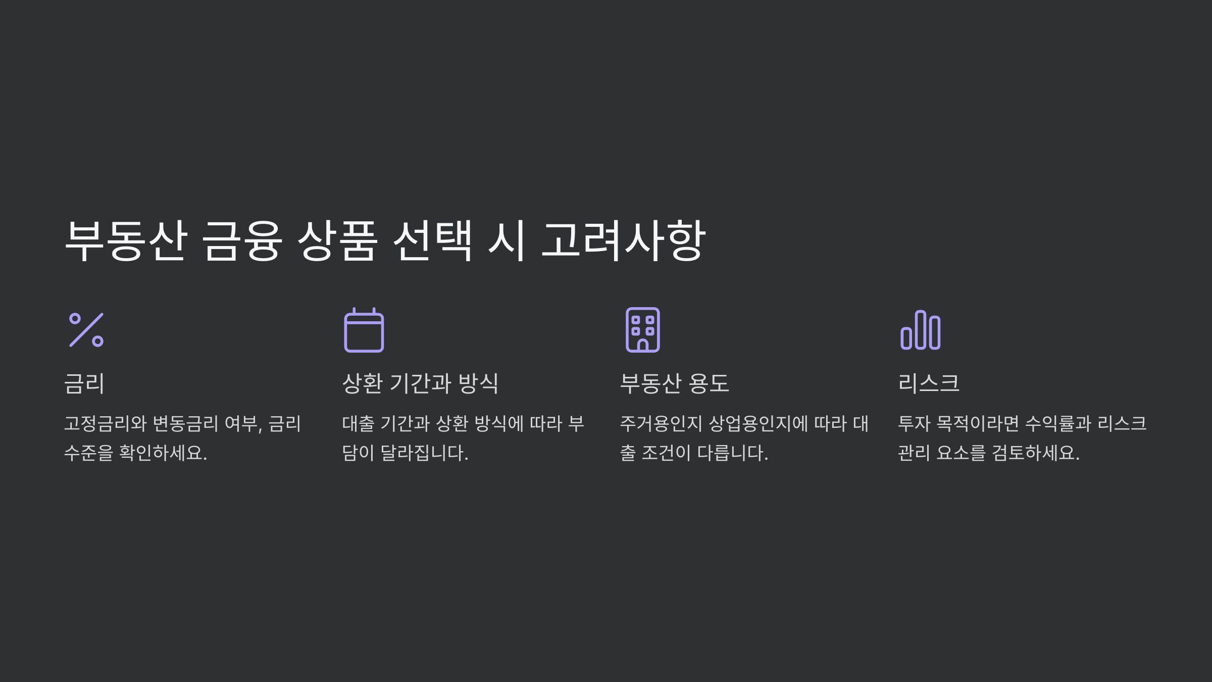 부동산 금융 상품 선택 시 고려해야 할 요소