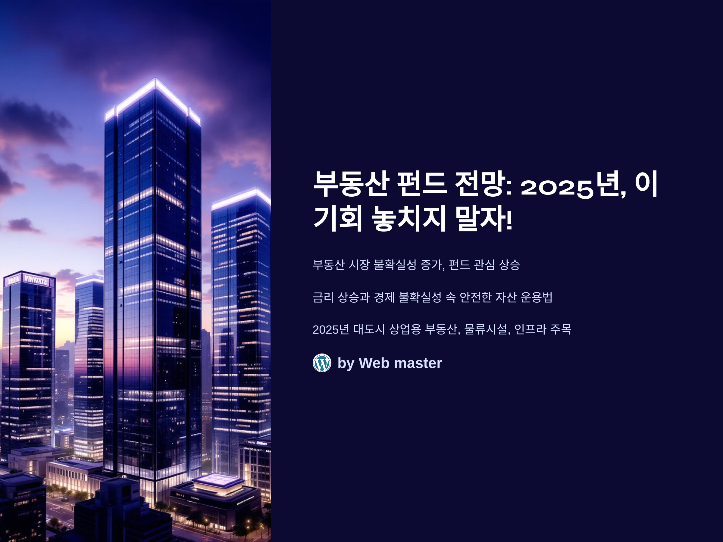 최근 부동산 시장의 불확실성이 커지면서, 부동산 펀드에 대한 관심이 다시 한 번 증가하고 있습니다. 금리가 상승하고, 경제 불확실성이 확대되는 가운데, 부동산 펀드는 안전한 자산 운용 방법으로 주목을 받고 있는데요. 특히 2025년을 앞두고, 부동산 펀드의 전망은 어떻게 될지 궁금하실 겁니다. 오늘은 그에 대해 깊이 있는 분석을 해보겠습니다.