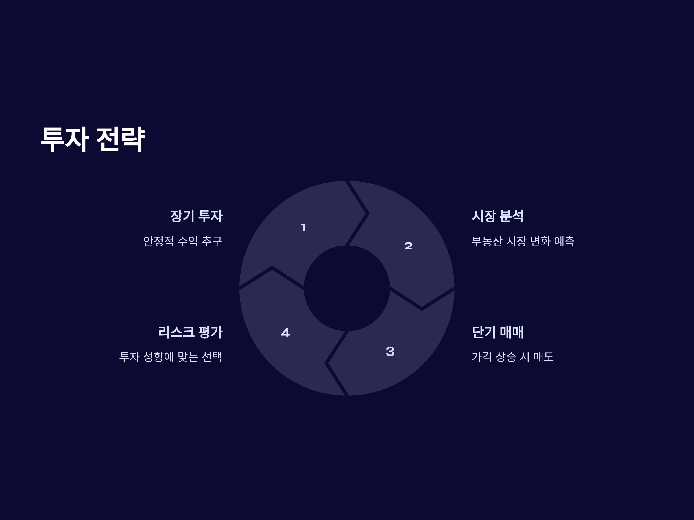 단기적으로 수익을 추구하는 투자자는 부동산 시장의 변동성을 잘 활용해야 합니다. 특정 부동산의 가격 상승이 예상될 때 매수하고, 가격이 일정 수준에 도달하면 매도하는 전략입니다. 이러한 전략은 빠른 수익을 추구하는 투자자에게 적합합니다.