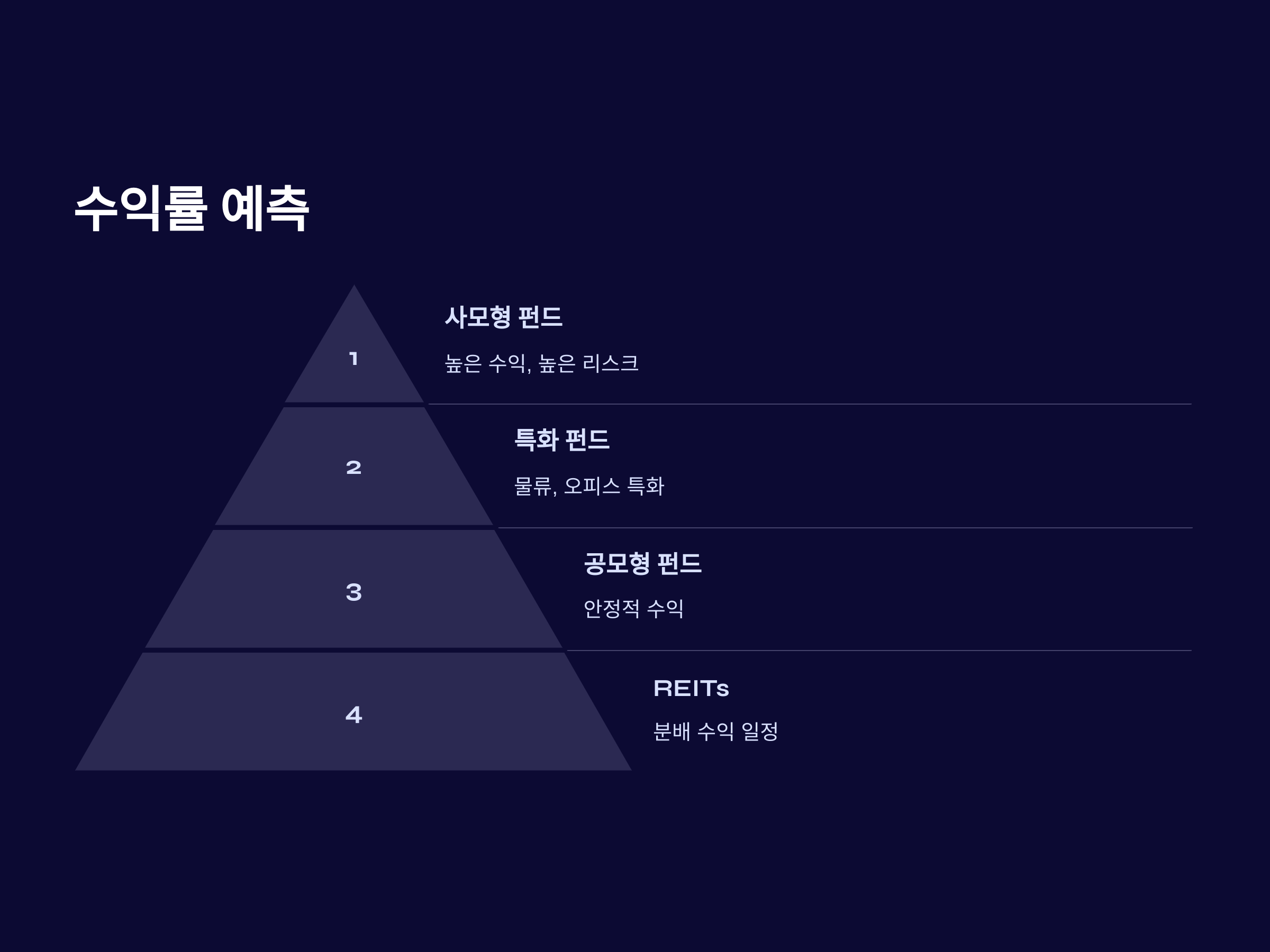 안정적인 수익을 원하는 투자자라면, 공모형 부동산 펀드나 REITs에 투자하는 것이 좋습니다. 이러한 펀드는 분배 수익이 비교적 일정하고, 리스크가 상대적으로 적습니다. 특히 상장된 REITs는 소액 투자자에게 적합한 선택이 될 수 있습니다.
